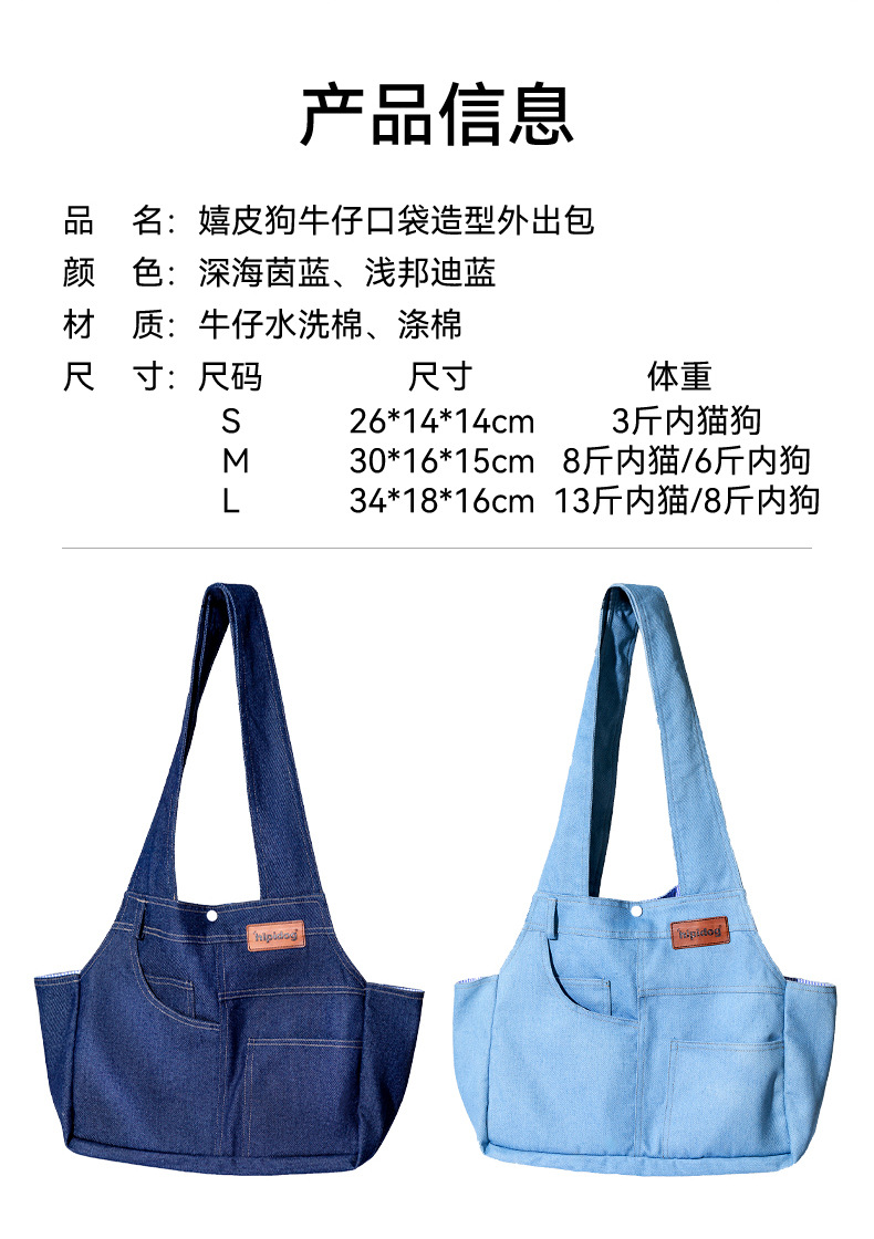 카우보이 포켓 모양 나가는 가방 작은 개 고양이 야외 가방 휴대용 가을과 겨울 애완 동물 개 용품 도매