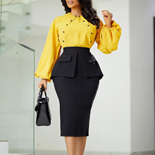 D463 아마존 대외 무역 여성 2024 봄 새로운 경사 어깨 구슬 OL 통글 투피스 대형 유럽과 미국 세트