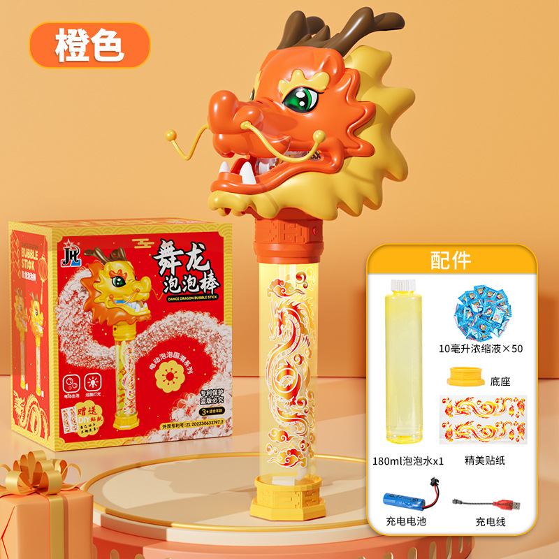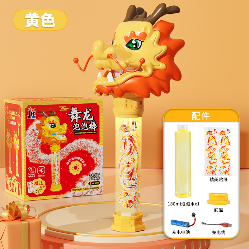 인기있는 드래곤 댄스 버블 스틱 어린이 전기 자동 빛나는 드래곤 년 버블 머신 새해 중국 에센스 드래곤 댄스 장난감스토어 가기