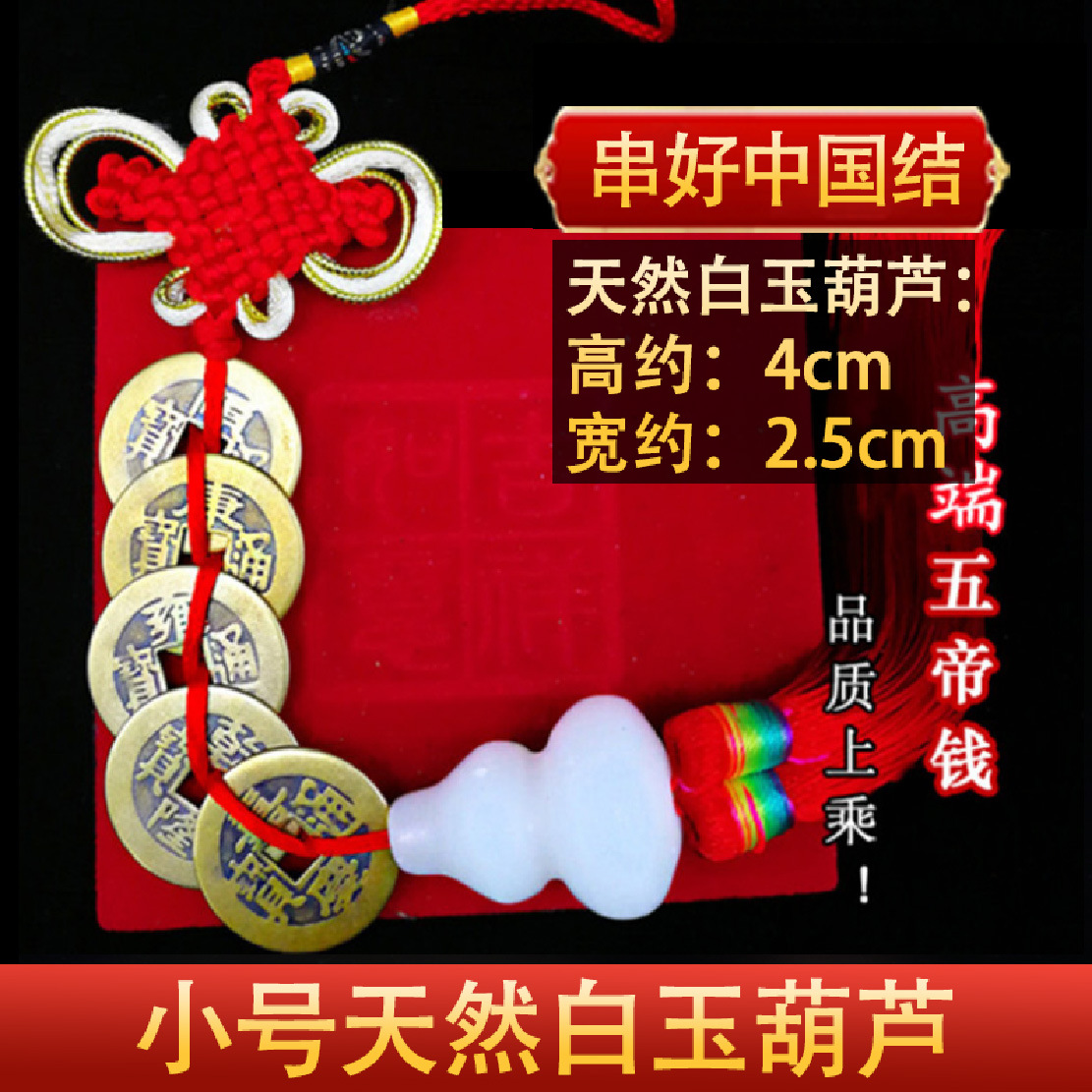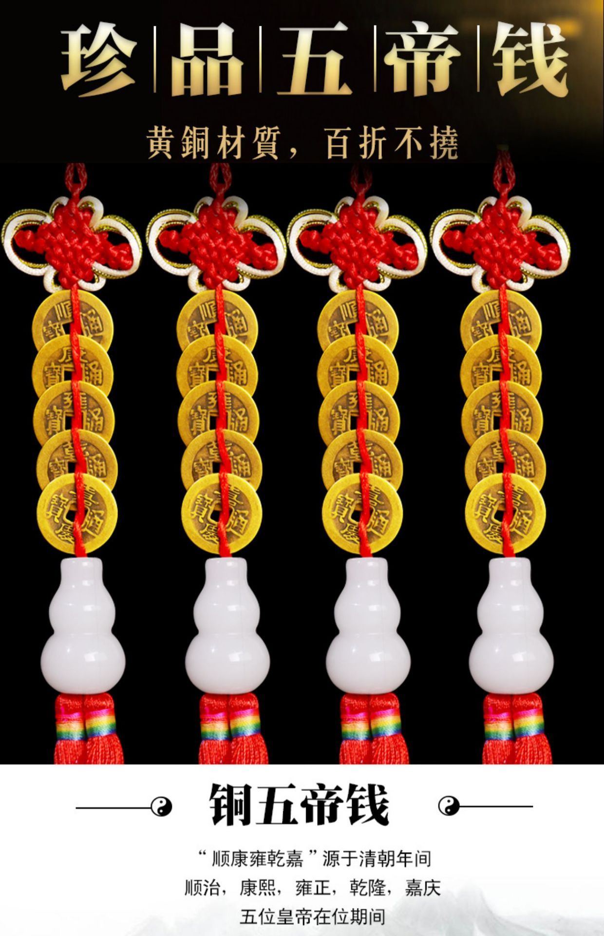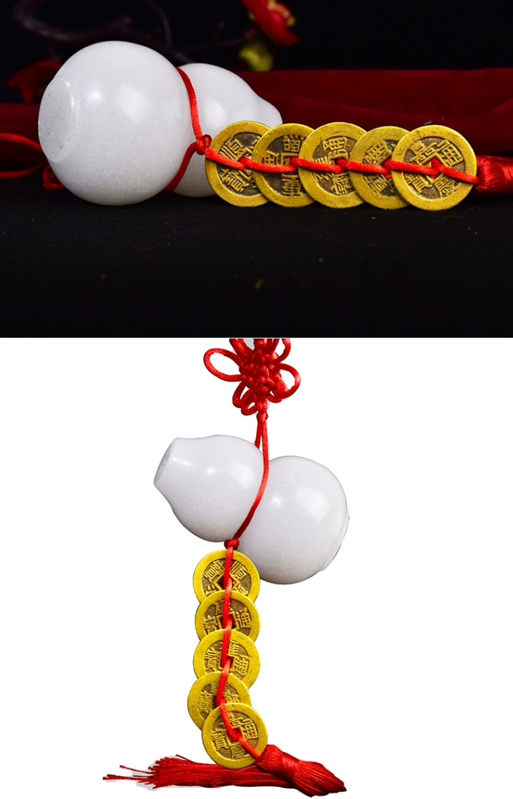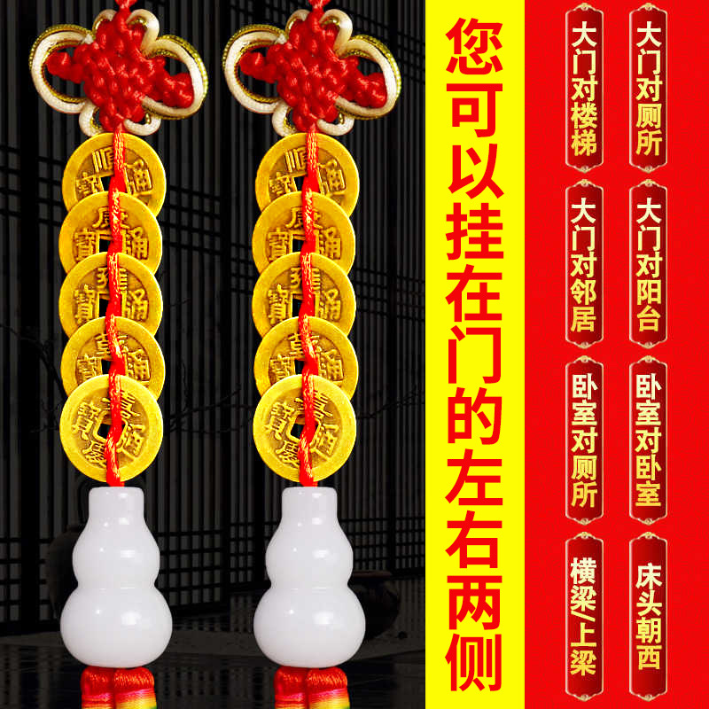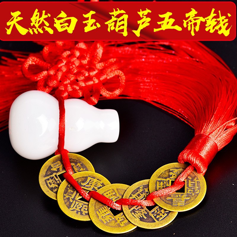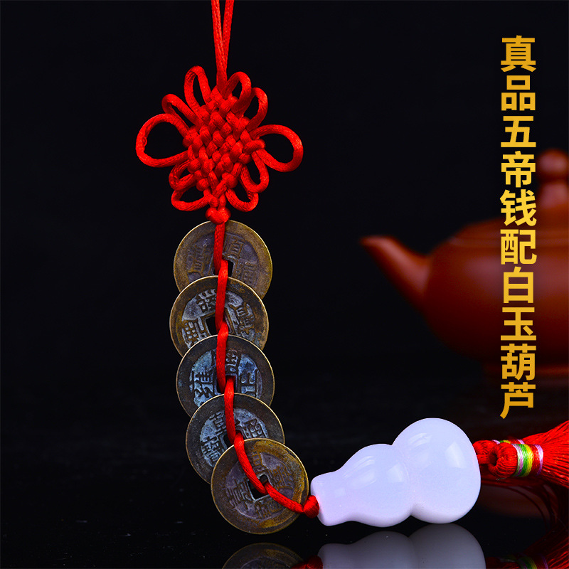 순수한 구리 다섯 황제 진짜 방문 펜던트 오픈 화이트 옥 조롱박 구리 동전 거실 창문 침실 가게 장식