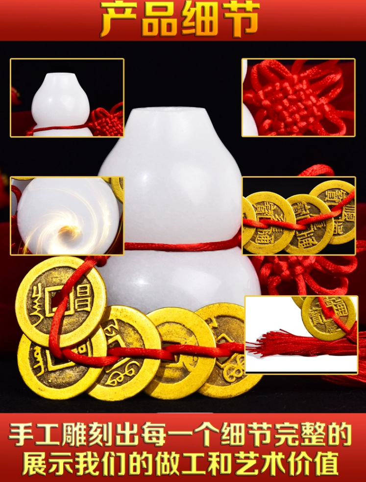 • 흰색 옥 조롱박이있는 청동 다섯 황제 돈 (초대형 옥 조롱박)