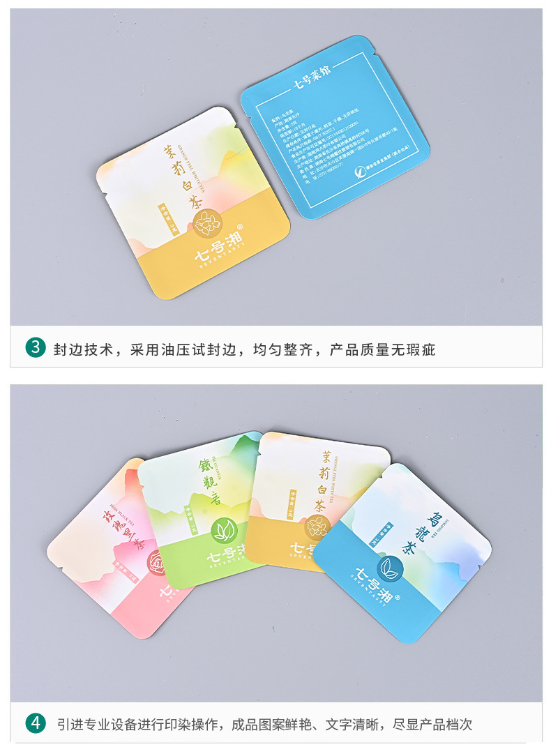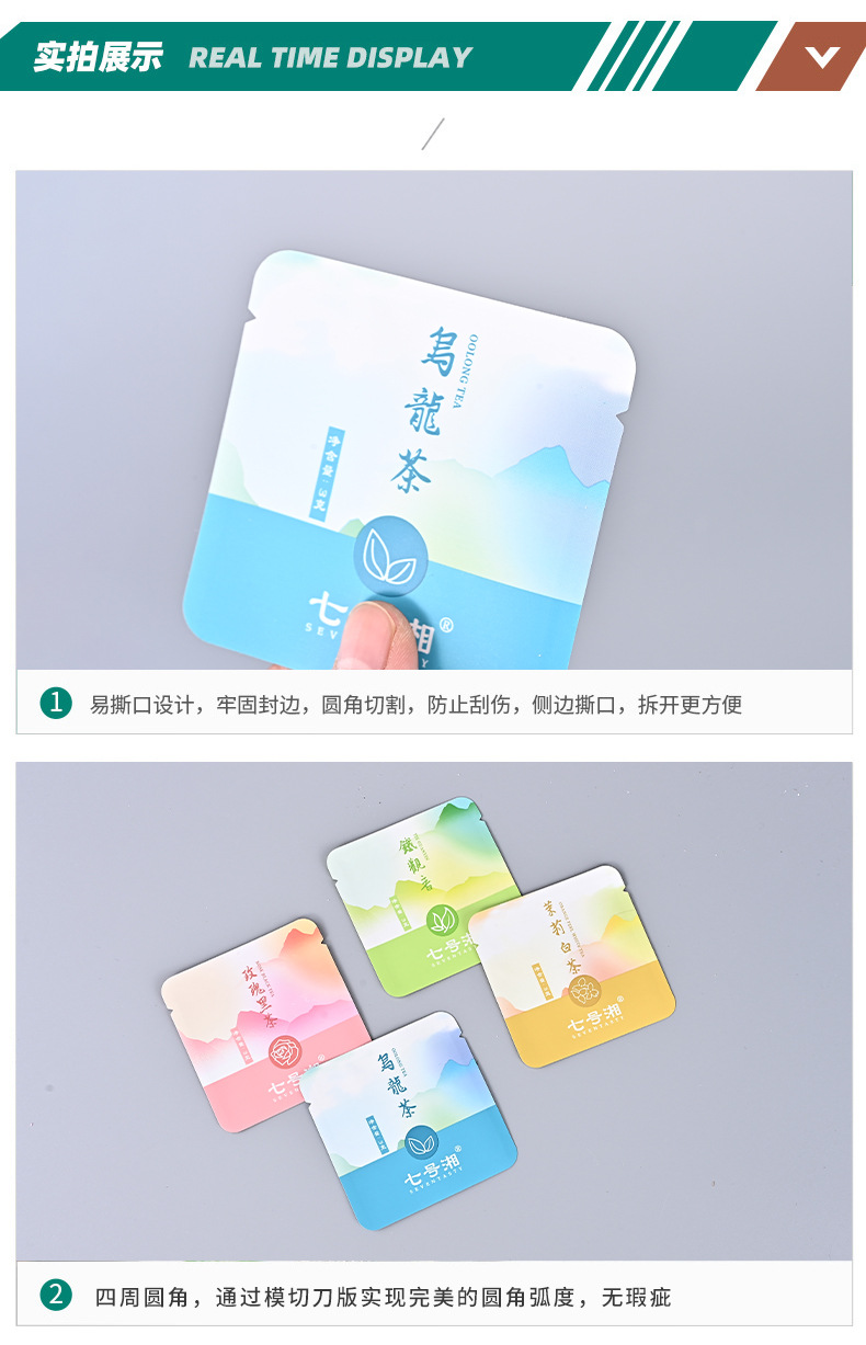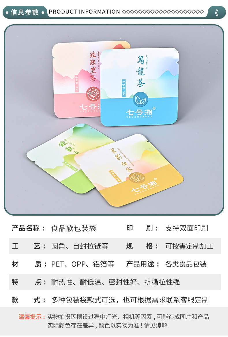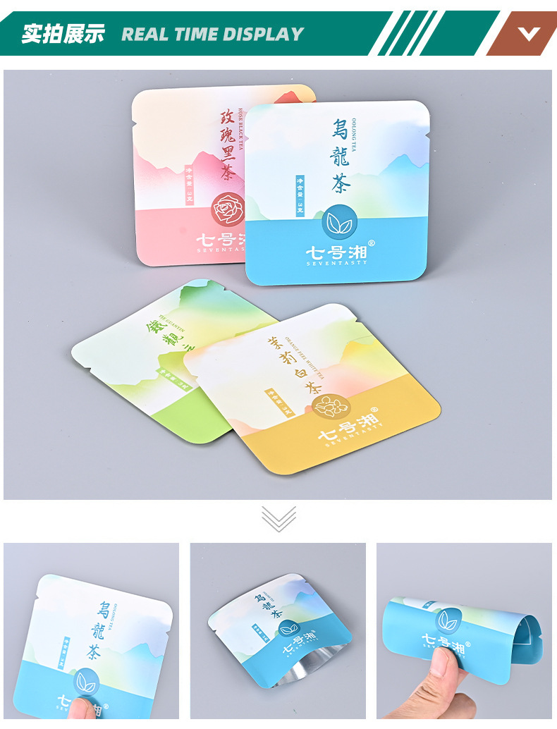 맞춤형 차 스낵 소형 포장 백, 밀봉된 알루미늄 코팅 소형 티백, 삼면 밀봉 식품 진공 백, 알루미늄 호일 백