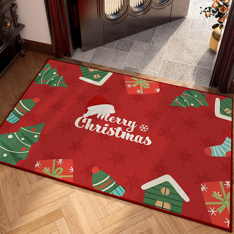 크리스마스 바닥 매트 붉은 축제 국경 크리스마스 장식 바닥 매트 가정용 미끄럼 방지 바닥 매트 가정용 상업