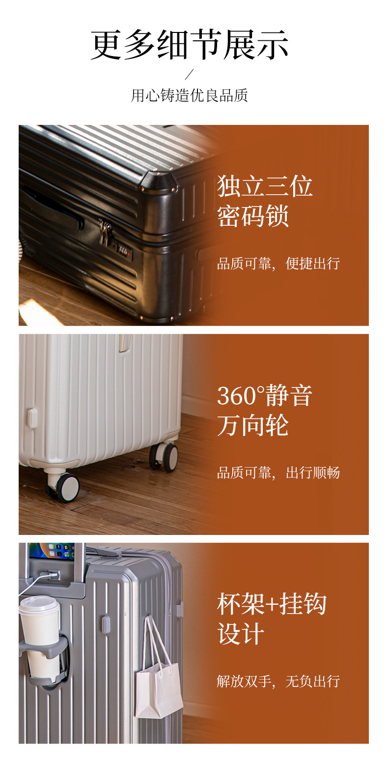 2024 새로운 솔리드 컬러 여행 대용량 수하물 케이스 여성의 조용한 유니버설 휠 트롤리 케이스 비밀번호 상자 여행 케이스스토어 가기