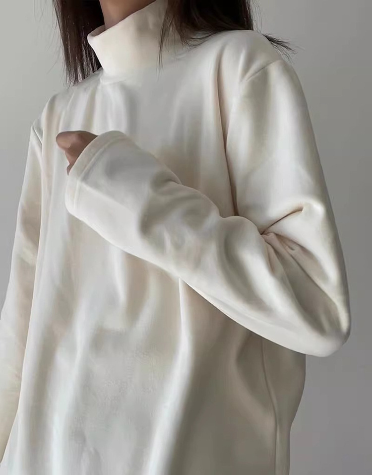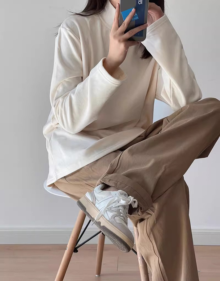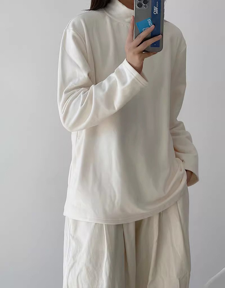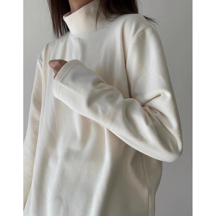 드 벨벳 바닥 셔츠 여성용 하프 터틀넥 긴팔 티셔츠 봄, 가을, 겨울 내복은 두꺼운 솔질 느슨한 기모