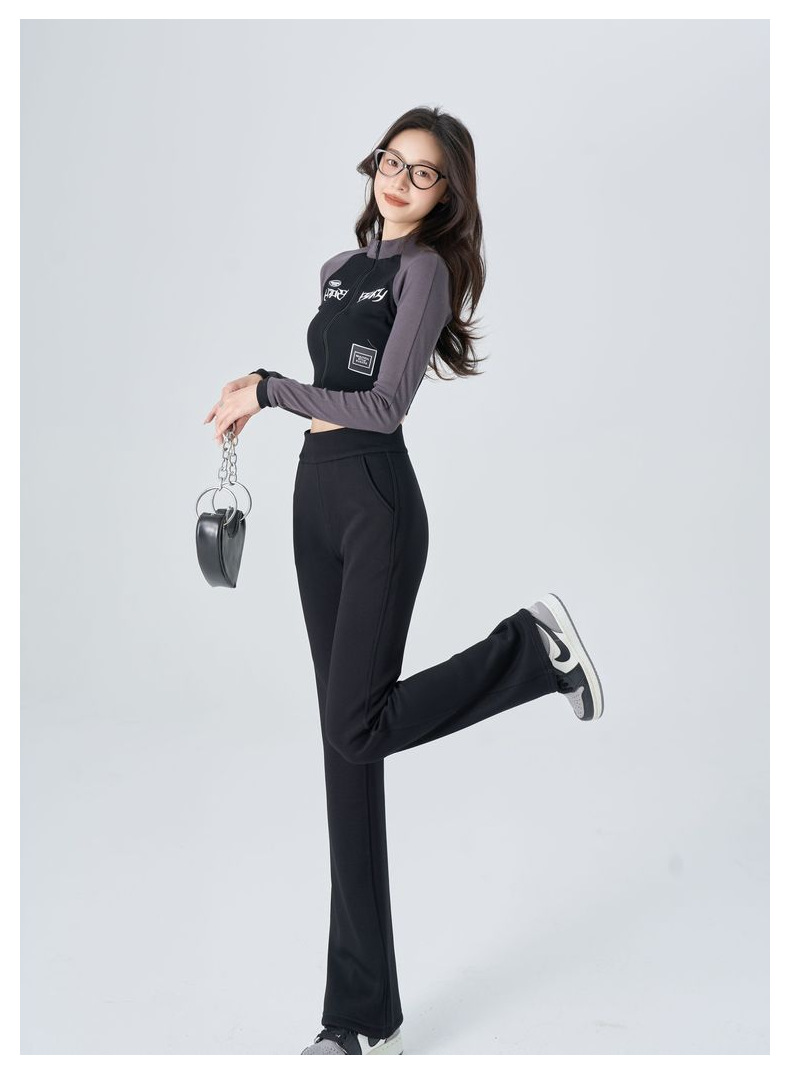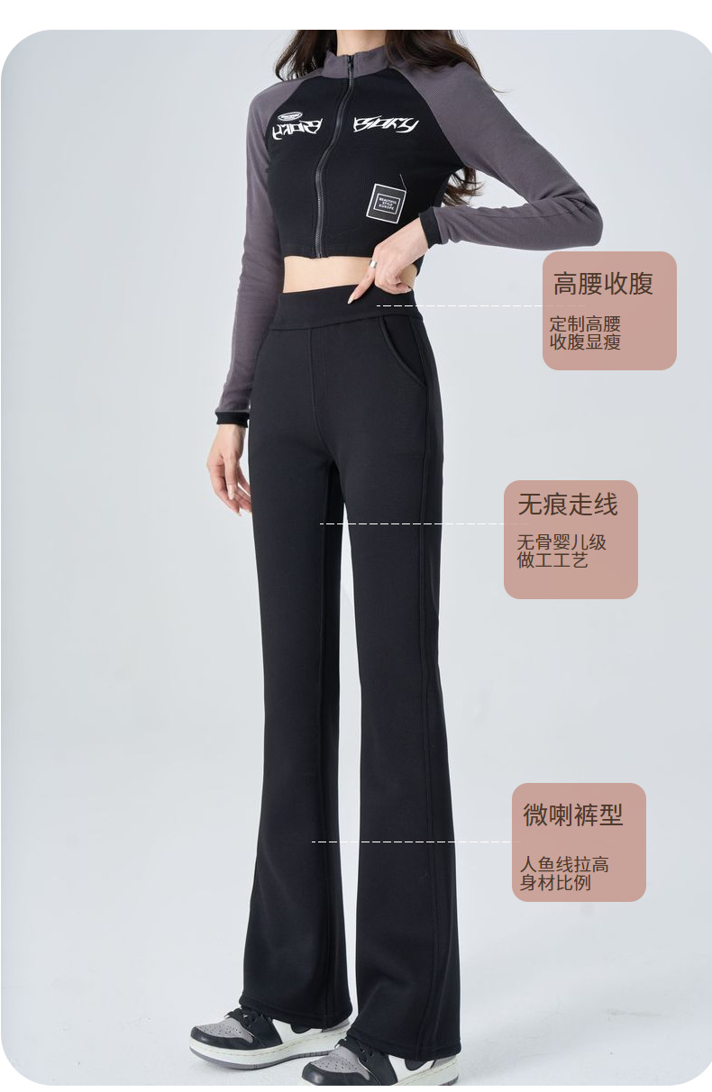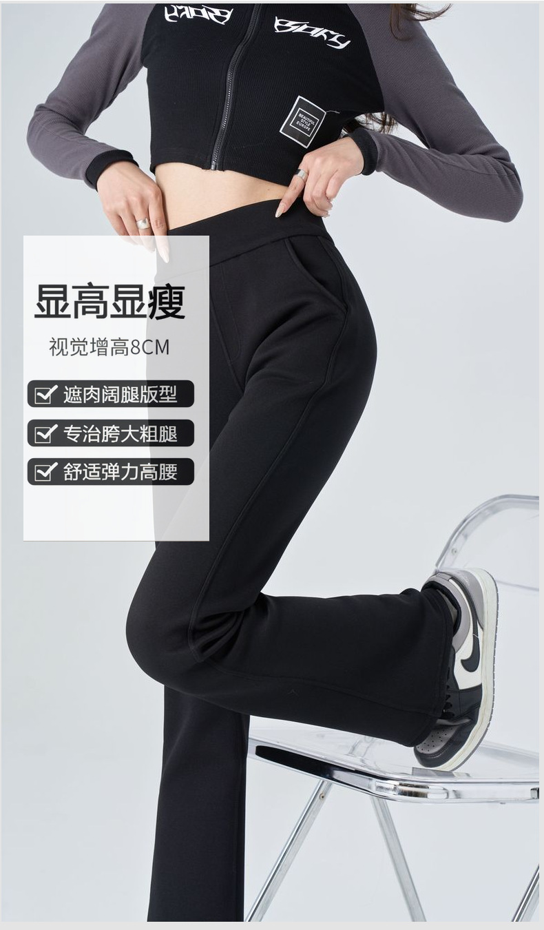 [캐시미어 슈퍼 모델 바지] 겨울 새로운 여성 의류 기모 두껍게 600g 브로케이드 코튼 스트레치 캐주얼 마이크로 플레어 팬츠