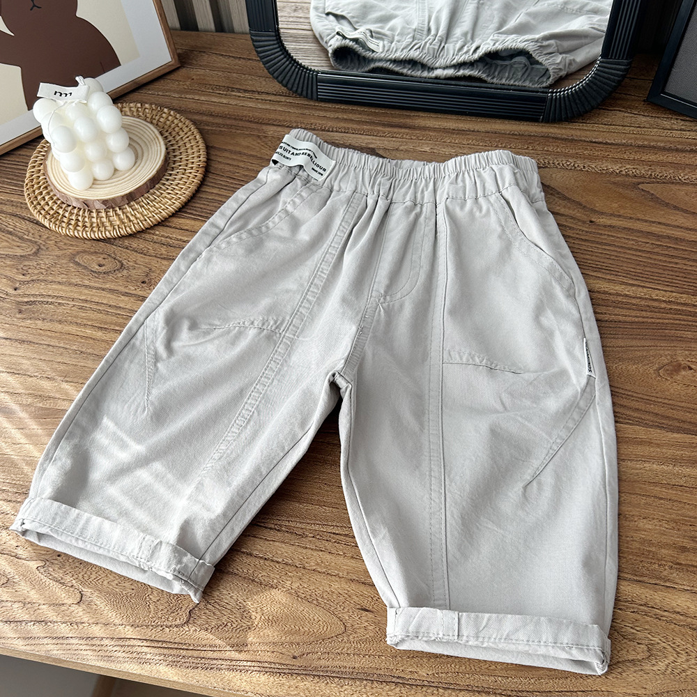 2025 여름 아동복 소년 아동 면 한국식 루즈 크롭 팬츠 5부 팬츠 반바지 아동 바지 비치 바지 배치