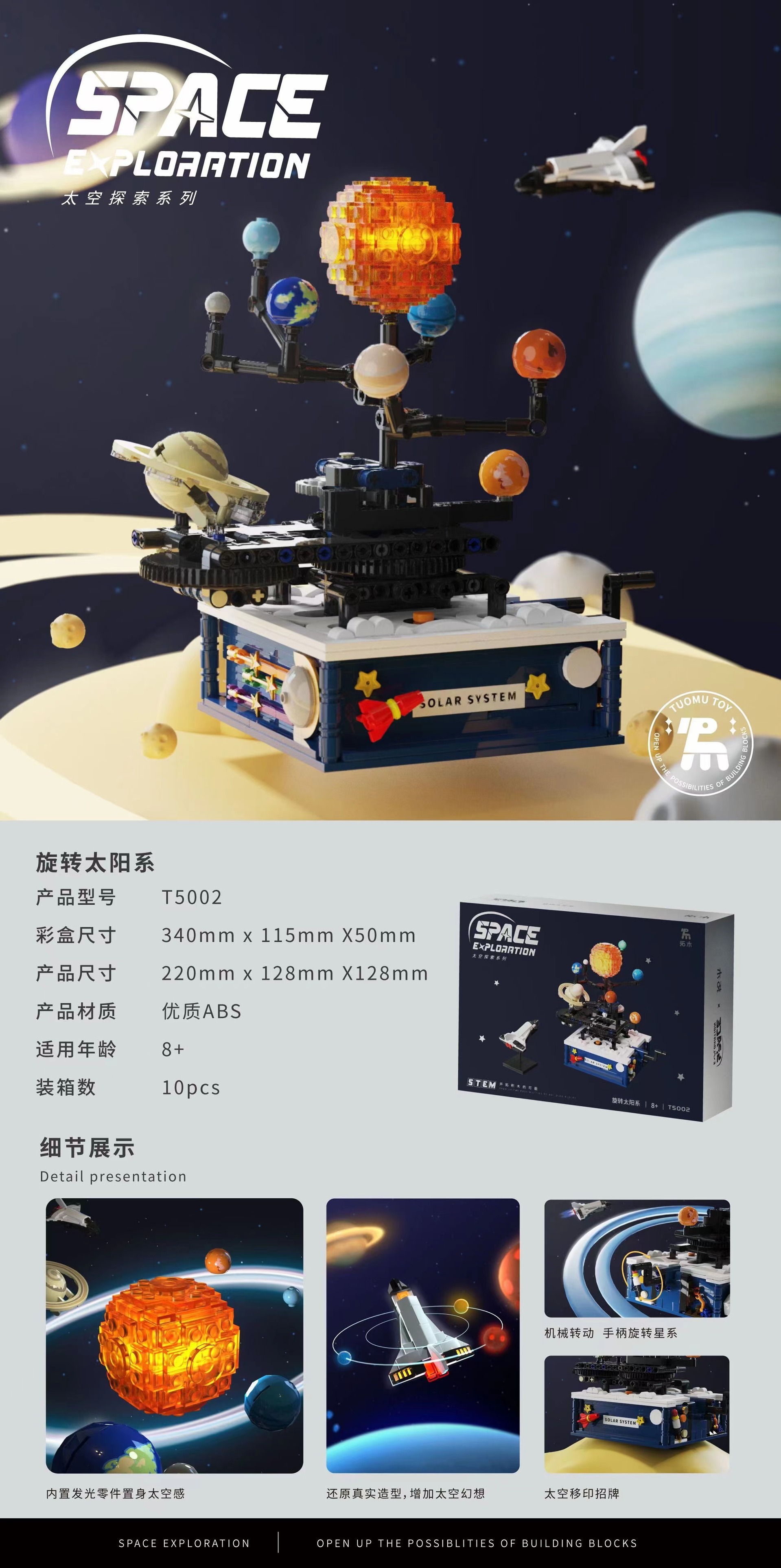 Cross-border Tuomu 5002 회전식 태양계 우주 모델 교육용 조립 소형 입자 빌딩 블록 어린이 장난감 선물