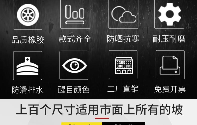 자동차 오르막 매트 고무 도로 경사 도로 보드 도로 치아 경사 등반 매트 스텝 매트 슬로프 패드 홈