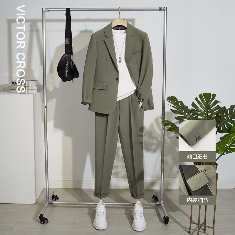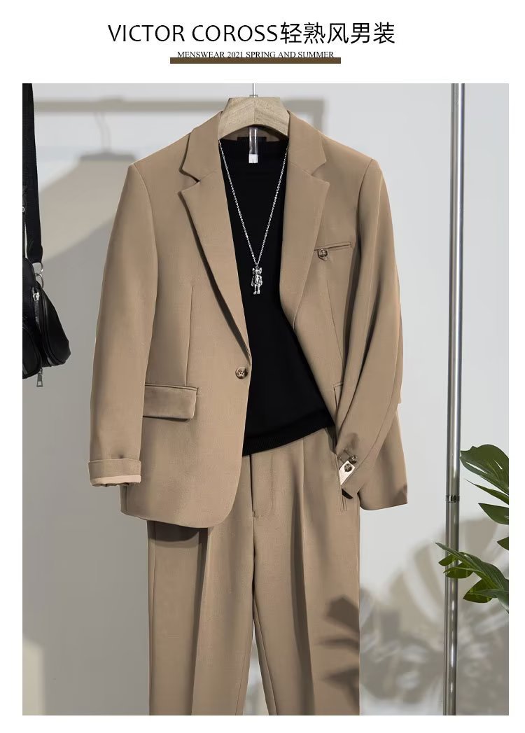 가을과 겨울 한국 스타일 느슨한 세트 세트 투피스 세트 남성 캐주얼 라이트 성숙한 남성 작은 세트 루안 잘 생긴 코트 패션