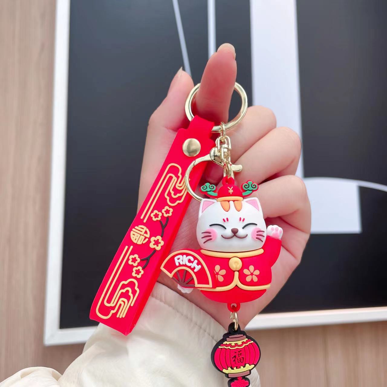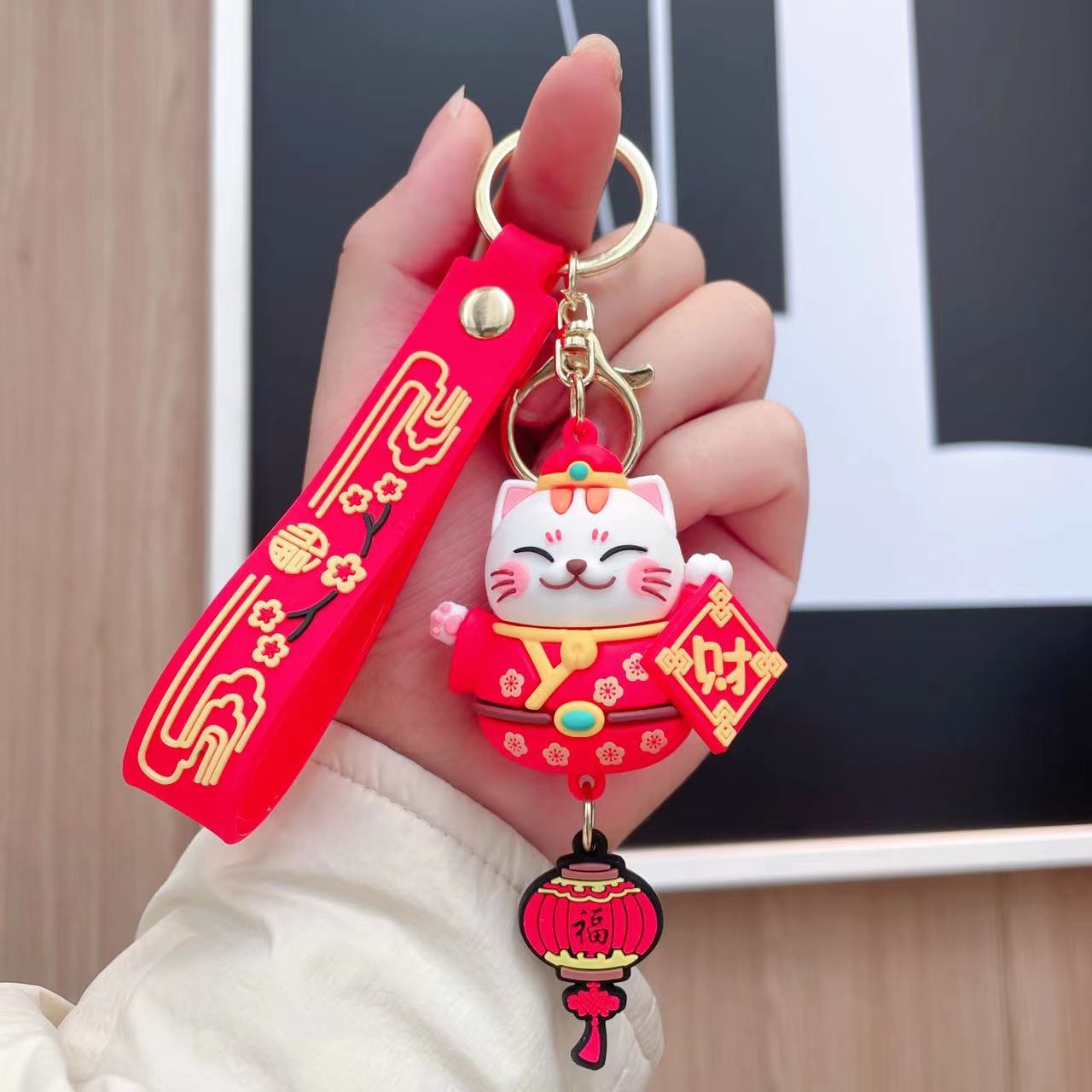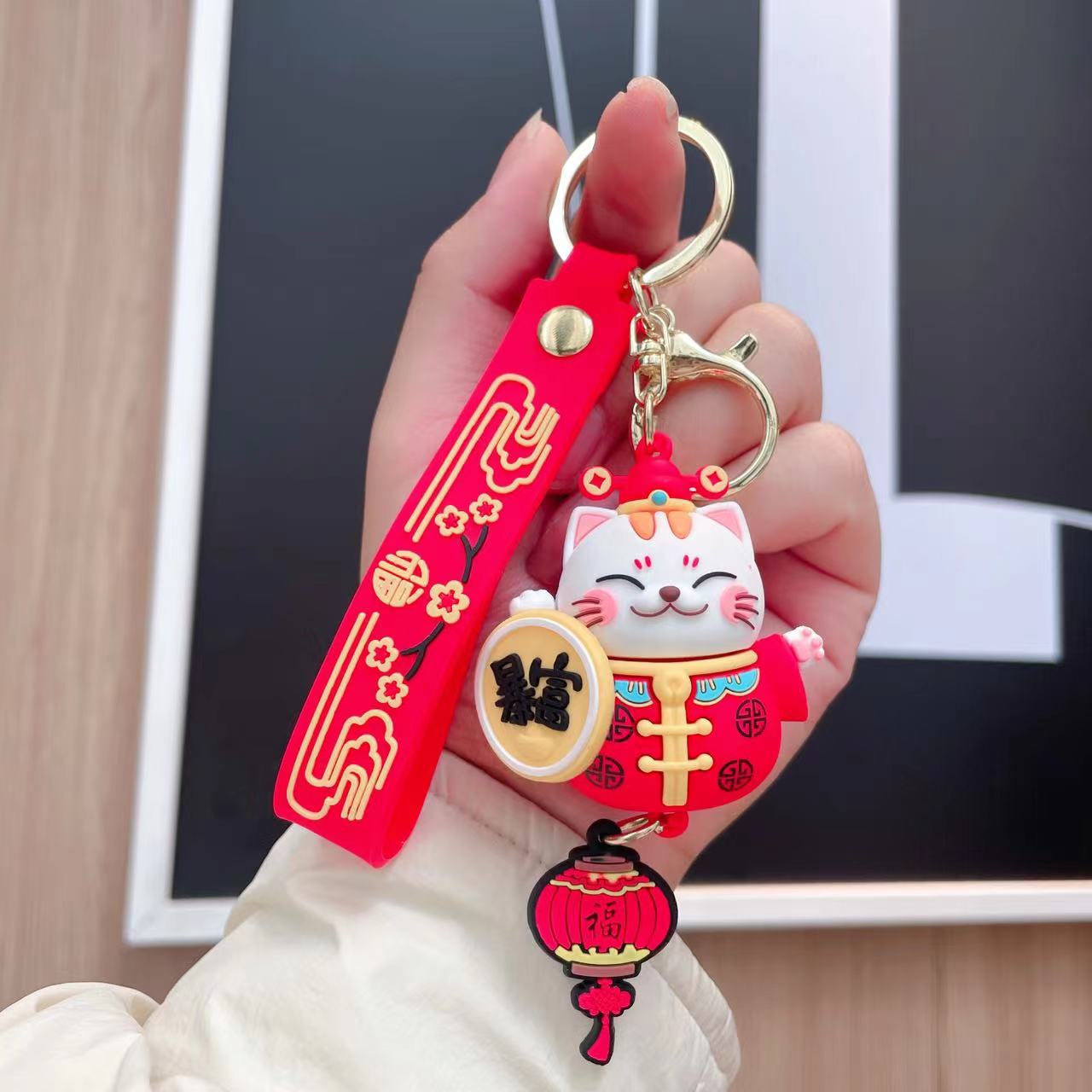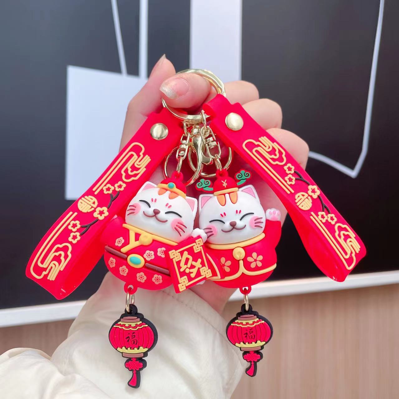 새해 창조적 인 고양이 키 체인 축제 가방 펜던트 자동차 여성 학교 가방 키 체인 작은 상품