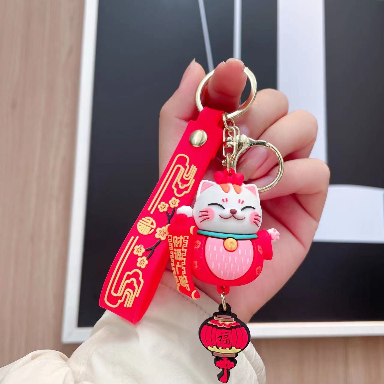 새해 창조적 인 고양이 키 체인 축제 가방 펜던트 자동차 여성 학교 가방 키 체인 작은 상품스토어 가기