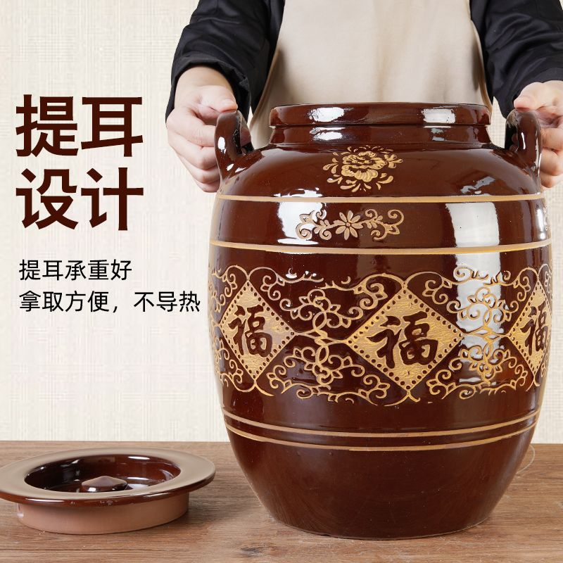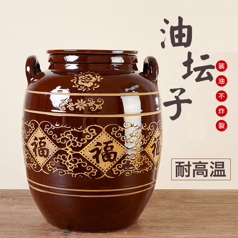 가정용 세라믹 오일 항아리 쌀 항아리 세라믹 오일 실린더 뚜껑 주방 양조 발효 타일 냄비 점토 도자기 오래된 소스 항아리 절인 야채스토어 가기