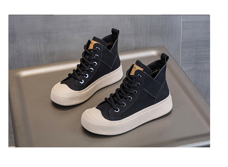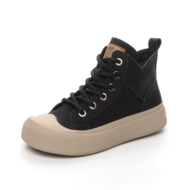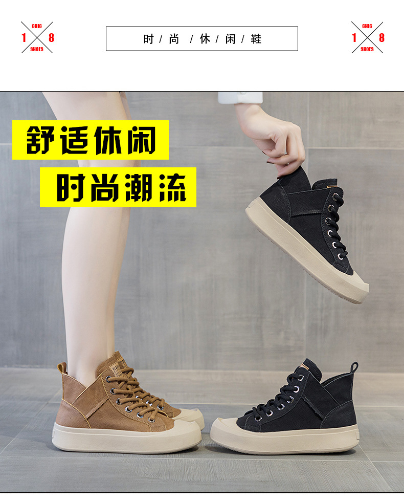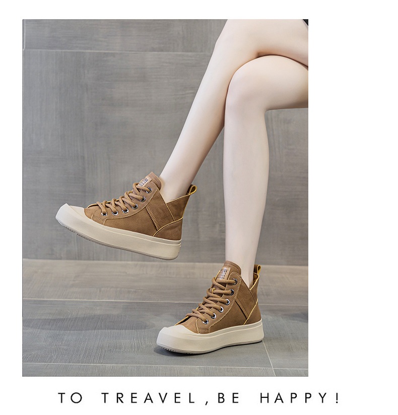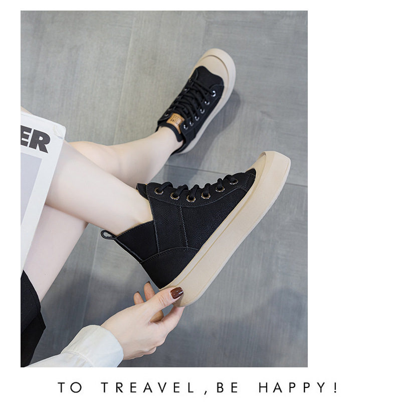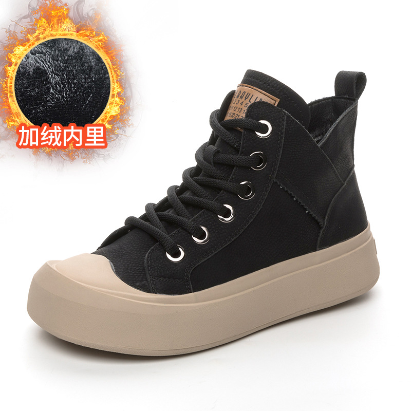 레트로 숏부츠 여성용 2023 가을 겨울 신상 다용도 캐주얼 하이탑 슈즈 여성용 플러스 사이즈 두꺼운 밑창 단화
