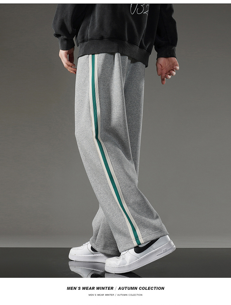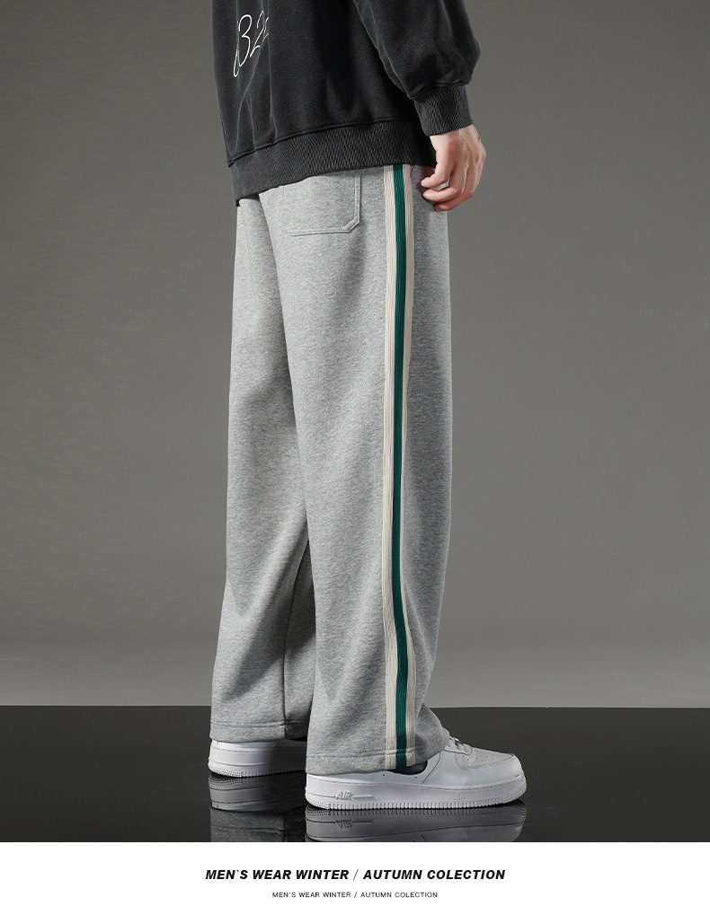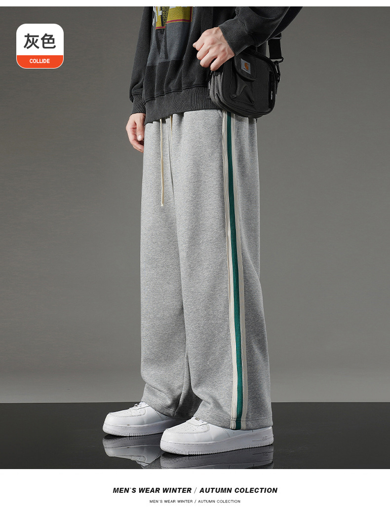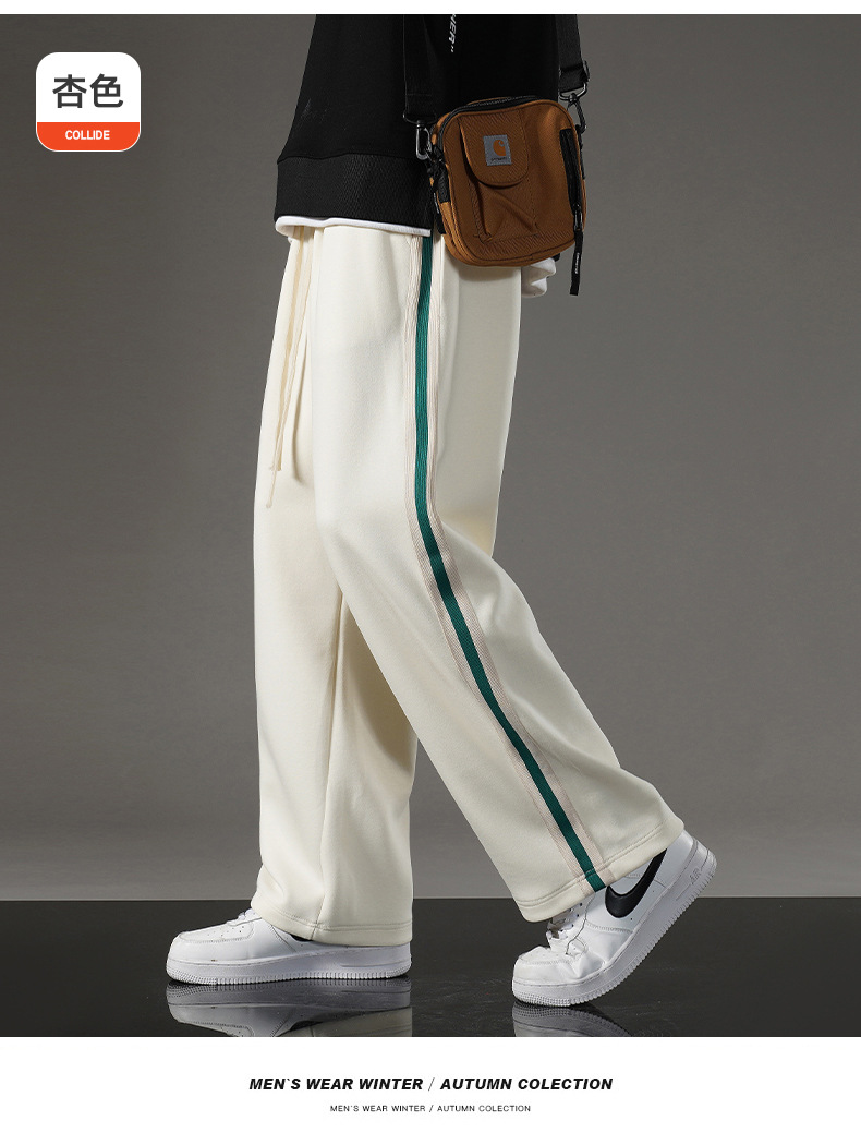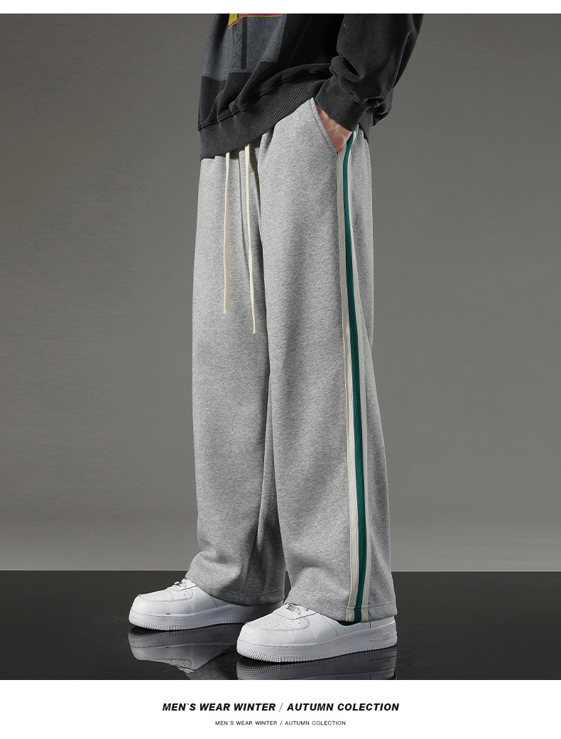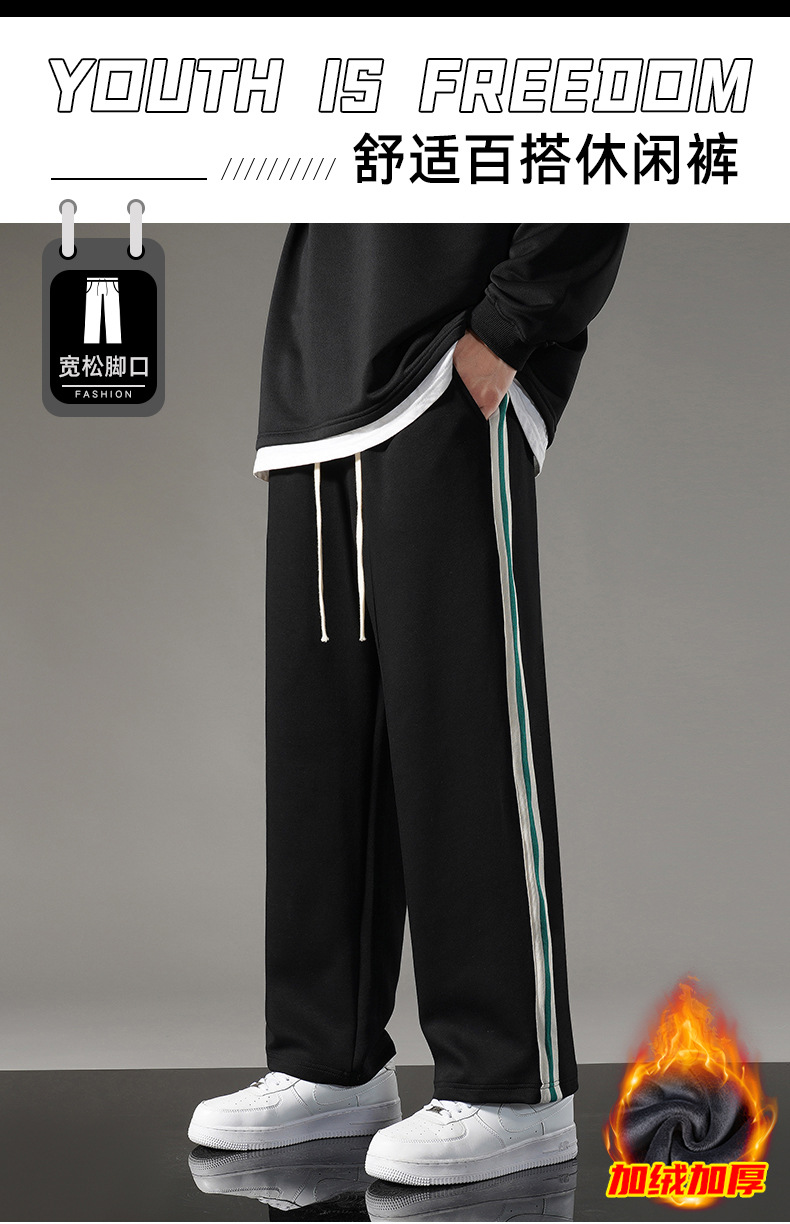 캐주얼 바지 남성 가을과 겨울 기모 스트레이트 패션 브랜드 느슨한 줄무늬 검은 바지 남성용 드레이프 스포츠 바지스토어 가기
