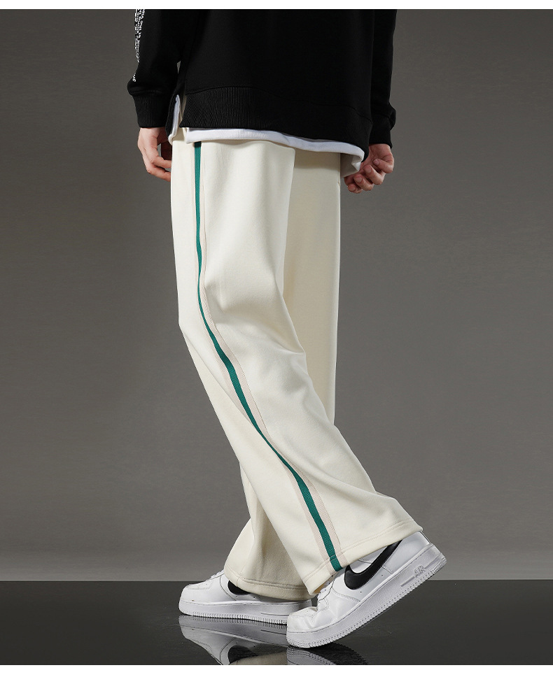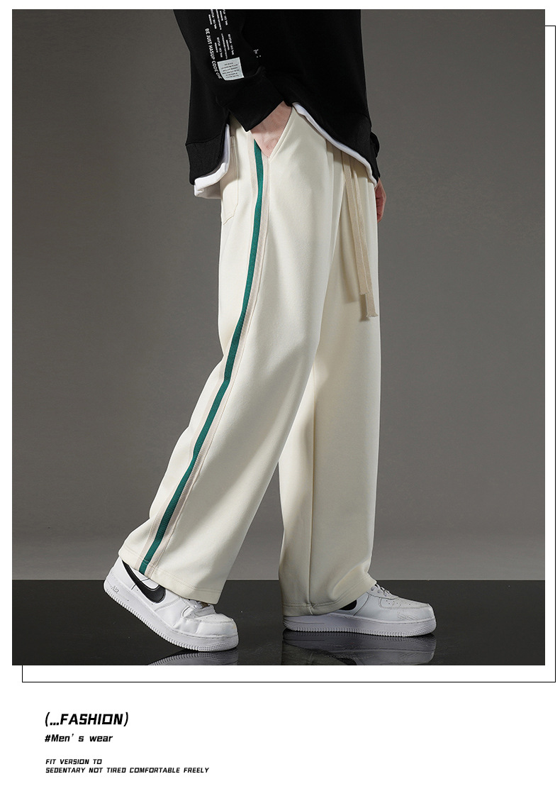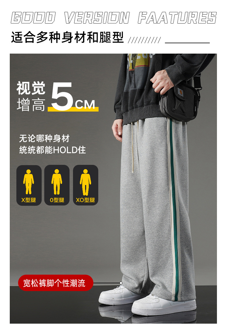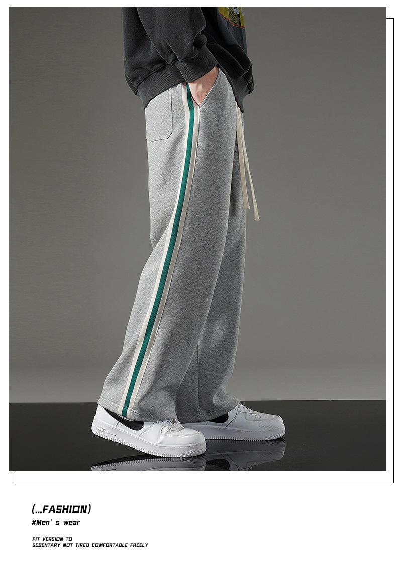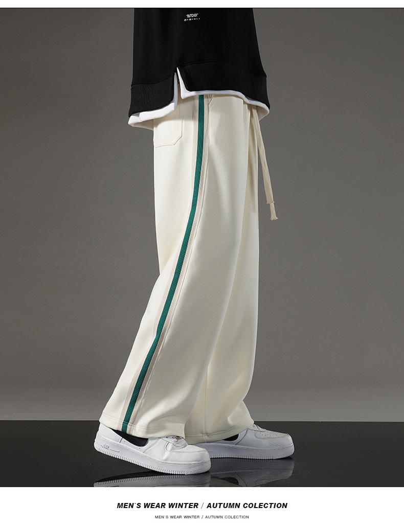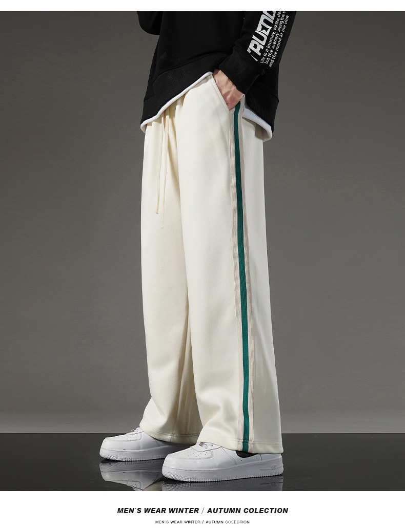 캐주얼 바지 남성 가을과 겨울 기모 스트레이트 패션 브랜드 느슨한 줄무늬 검은 바지 남성용 드레이프 스포츠 바지스토어 가기