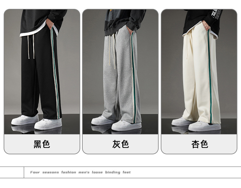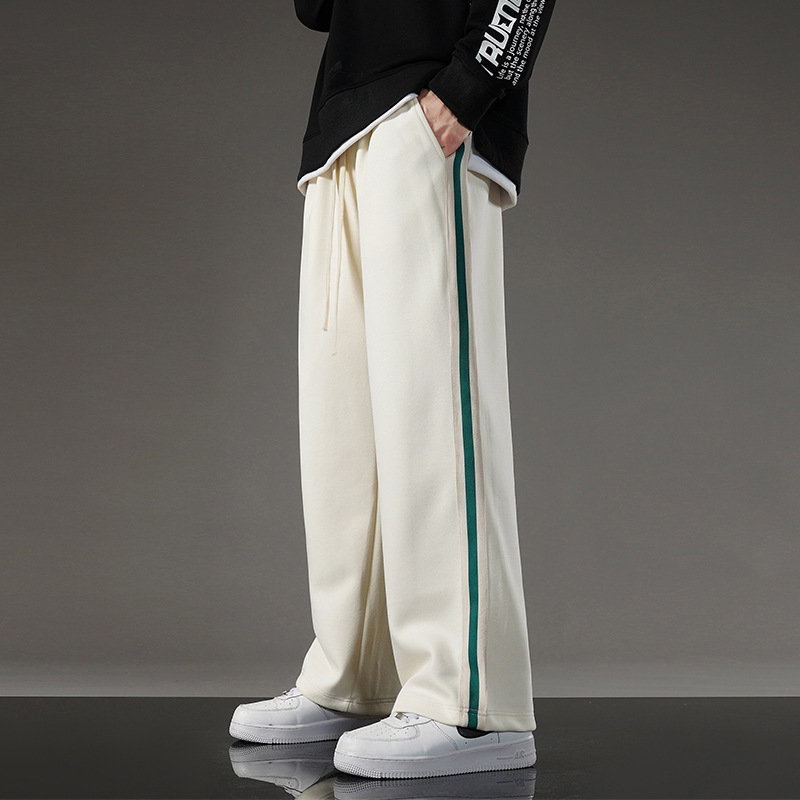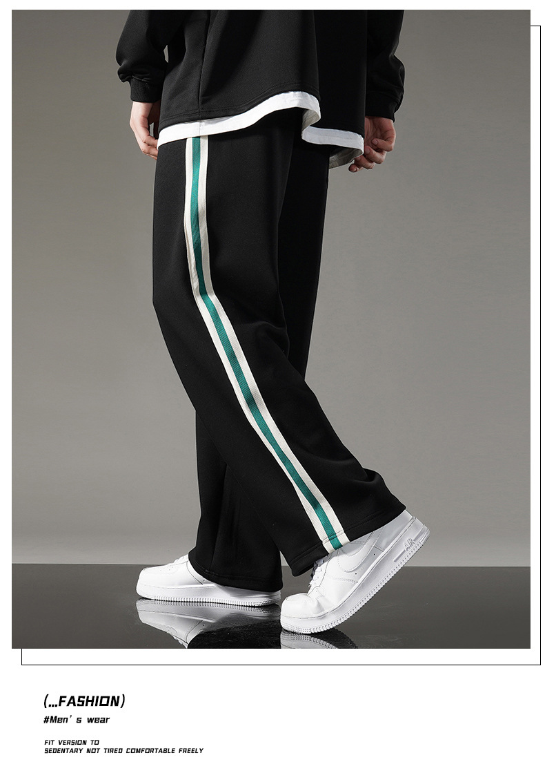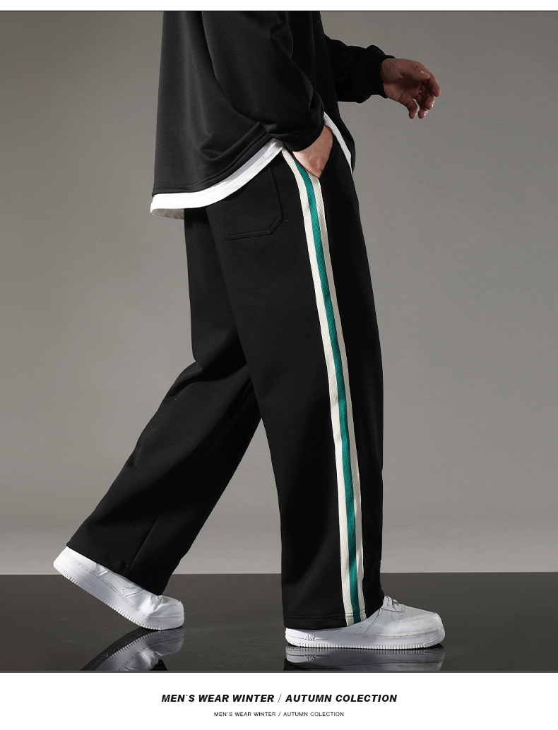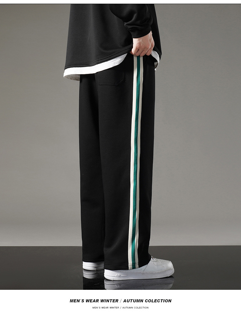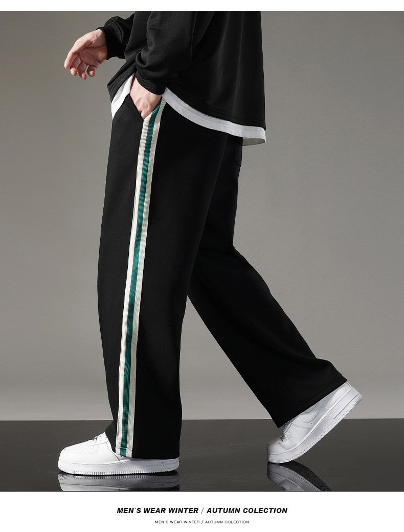 캐주얼 바지 남성 가을과 겨울 기모 스트레이트 패션 브랜드 느슨한 줄무늬 검은 바지 남성용 드레이프 스포츠 바지