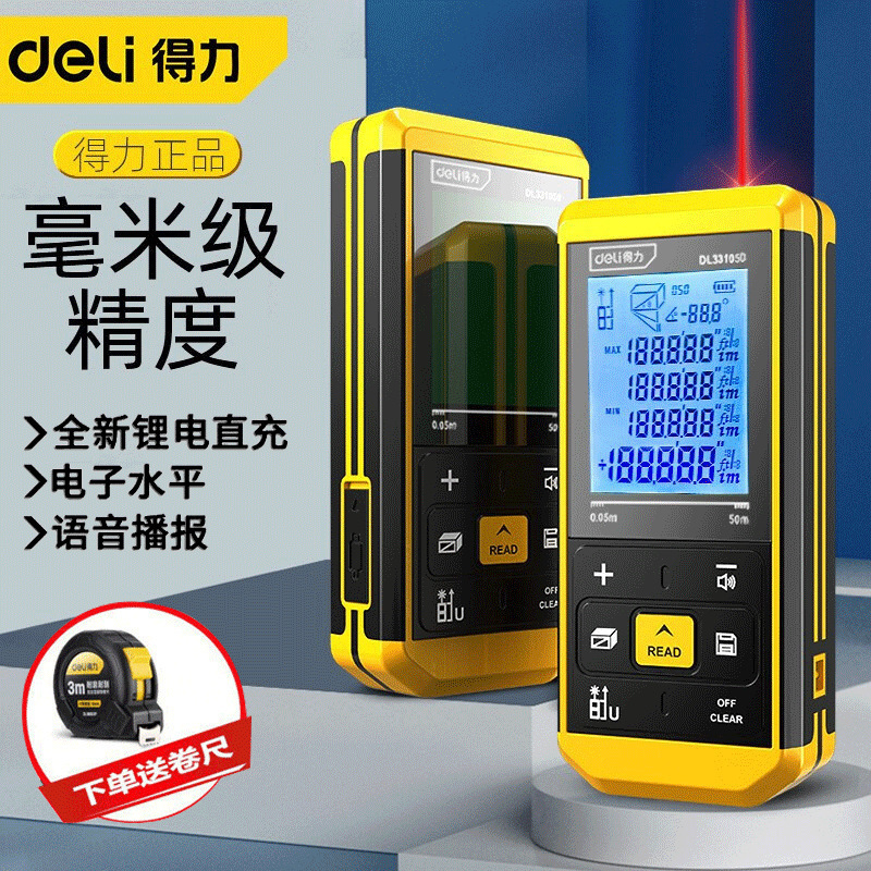델리 레이저 레인지 파인더 고정밀 음성 리튬 배터리 대형 스크린 레이저 전자 통치자 측정 방 악기 홈 도매스토어 가기