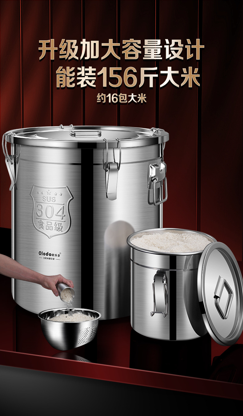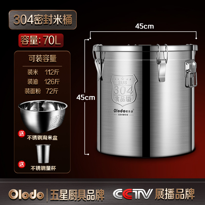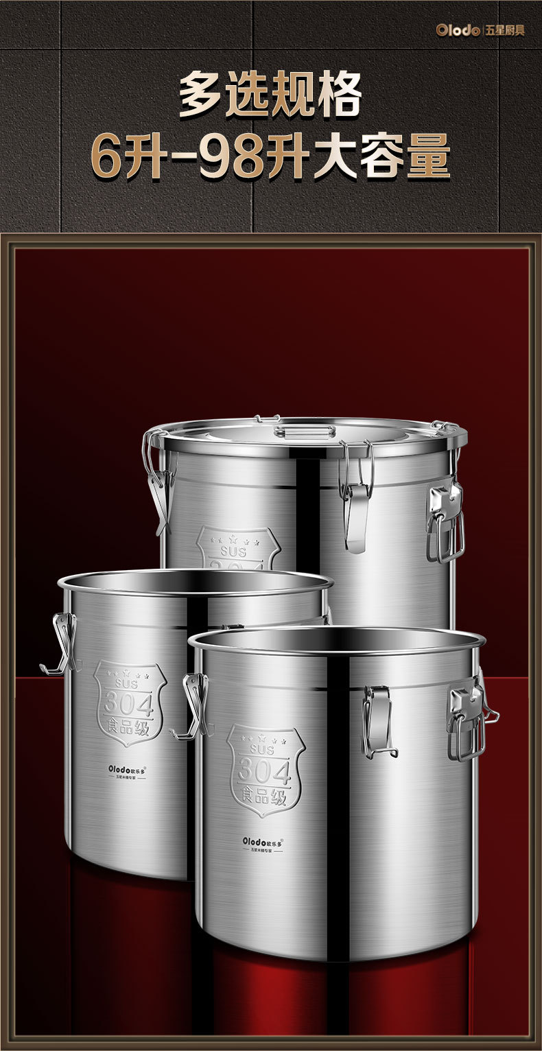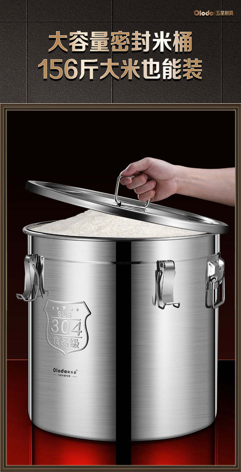 304 스테인레스 스틸 라이스 버킷 곤충 방지 및 방습 가정용 밀봉 버킷 식품 등급 쌀가루 저장 곡물 버킷