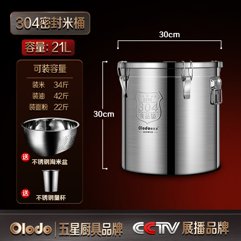 304 스테인레스 스틸 라이스 버킷 곤충 방지 및 방습 가정용 밀봉 버킷 식품 등급 쌀가루 저장 곡물 버킷스토어 가기