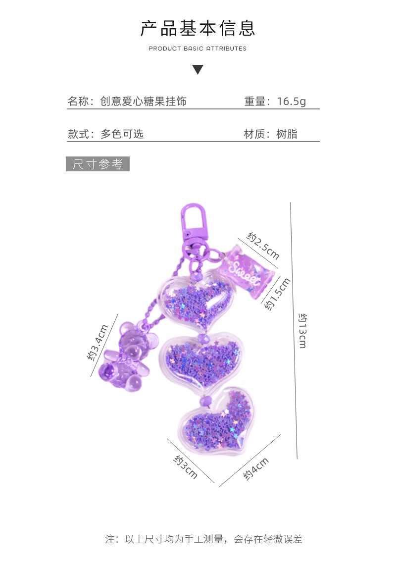 만화 귀여운 속편 반짝이 아크릴 키 체인 컬러 캔디 베어 학생 여성 가방 펜던트 작은 보석