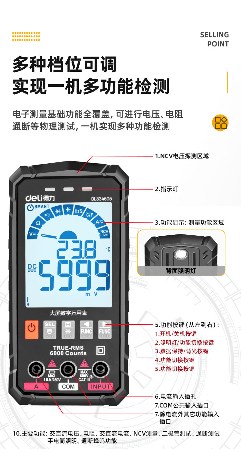 델리 멀티 미터 디지털 고정밀 자동 지능형 안티 화상 전기 수리 보편적 인 작은 도매스토어 가기