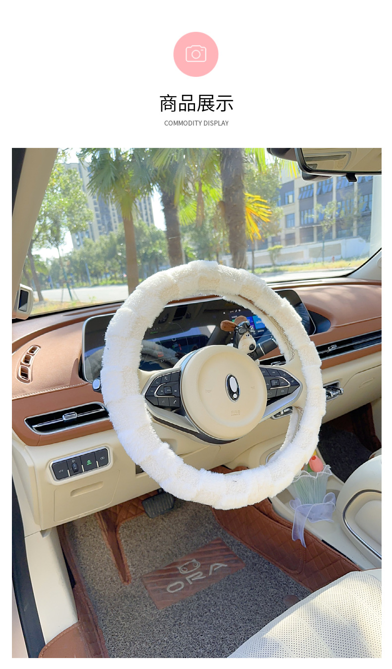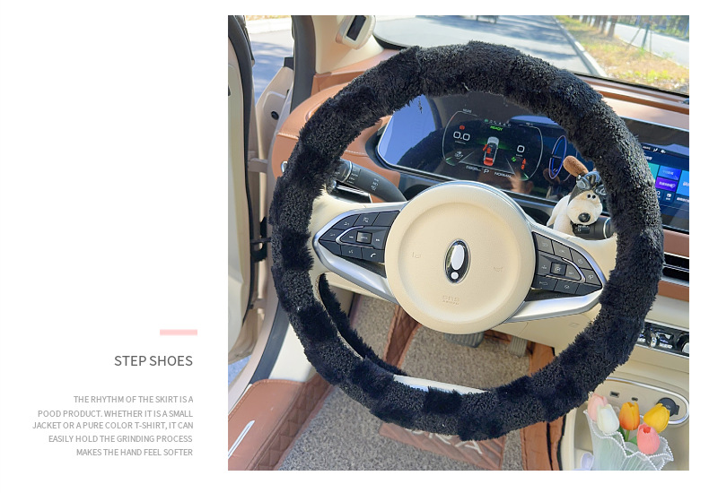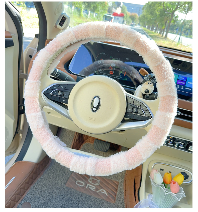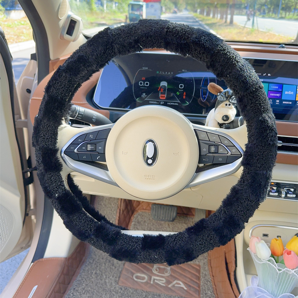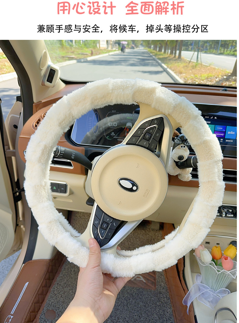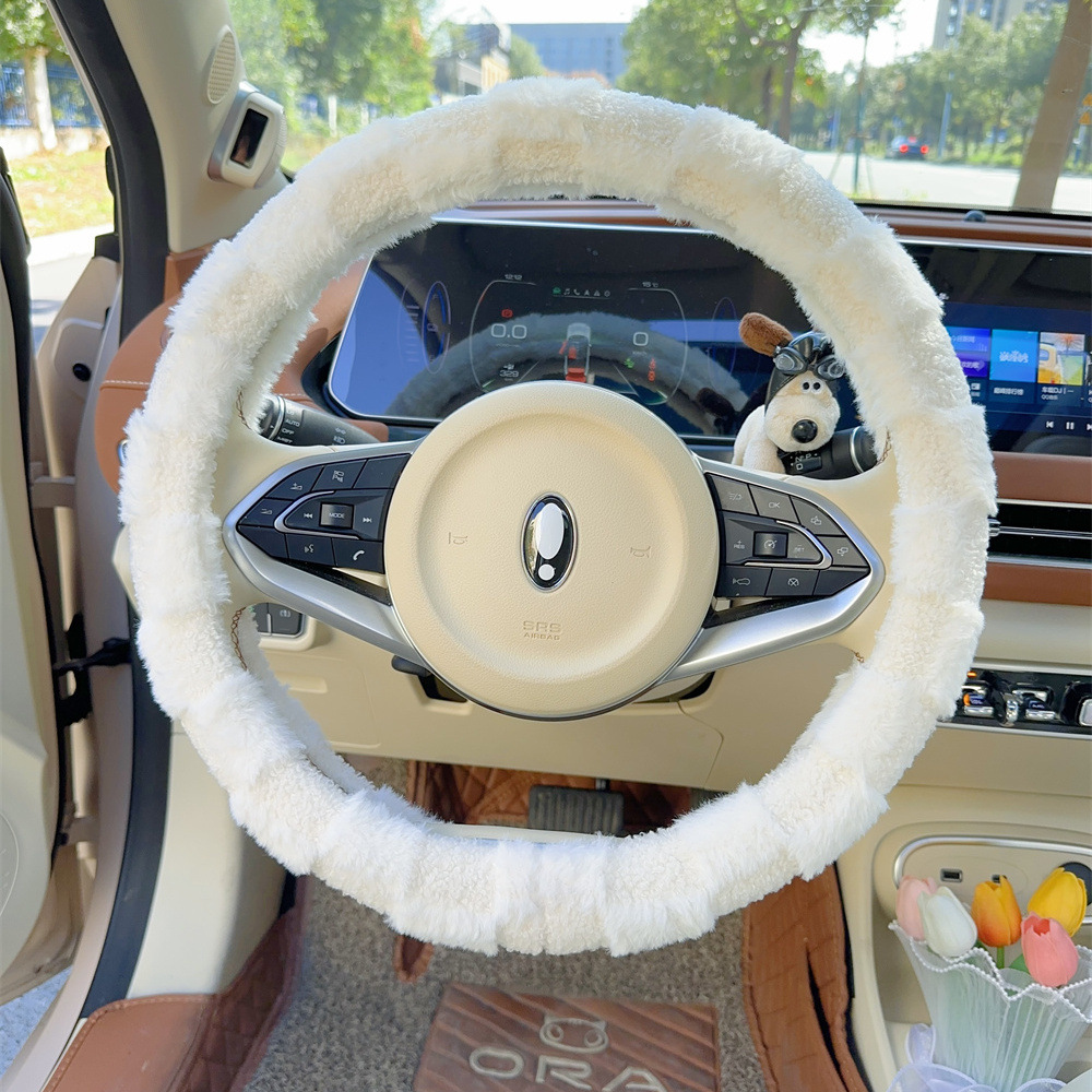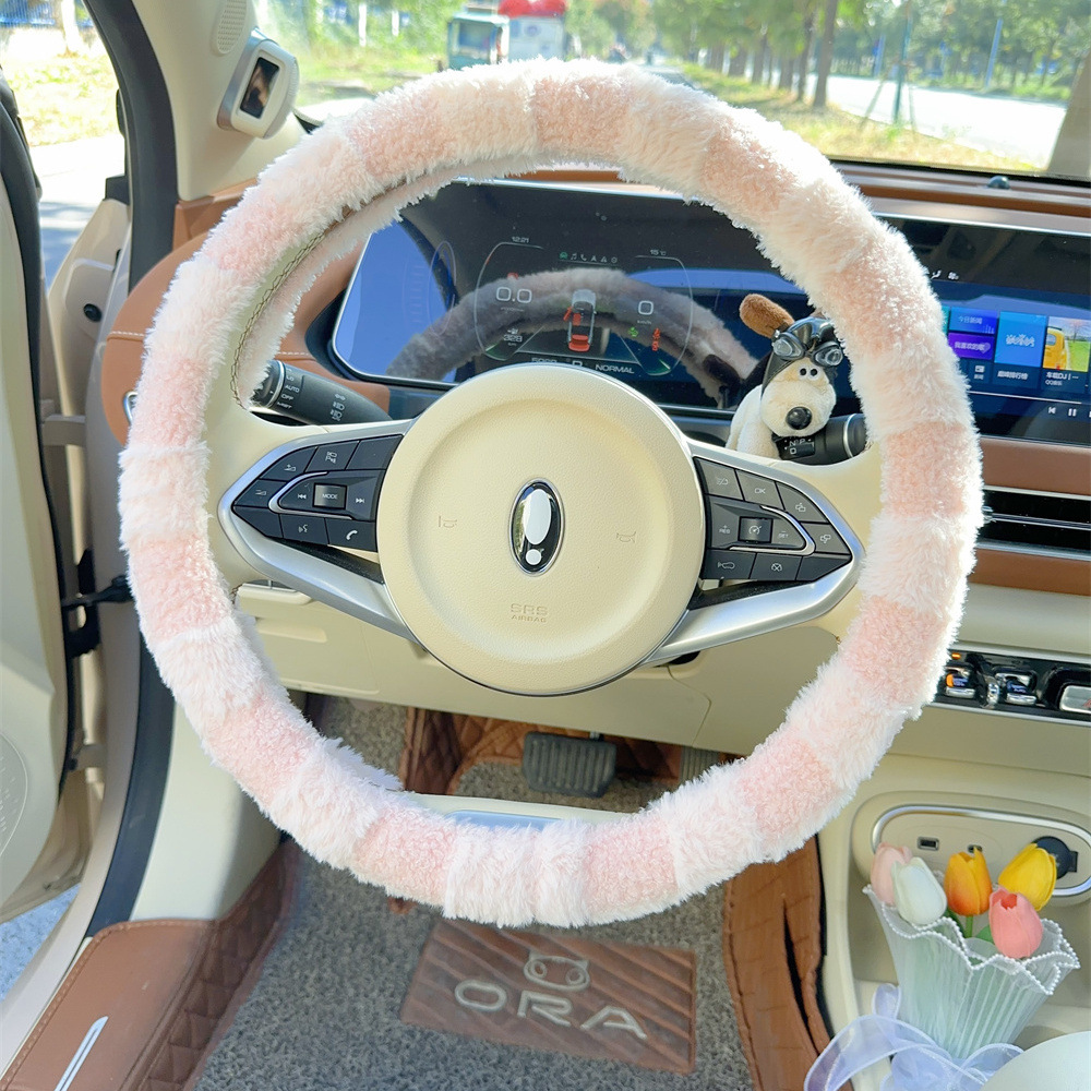 자동차 스티어링 휠 커버 보편적 인 미끄럼 방지 귀여운 겨울 시즌 플러시 따뜻한 신선한 간단한 자동차 핸들 커버 여신 인터넷 레드스토어 가기