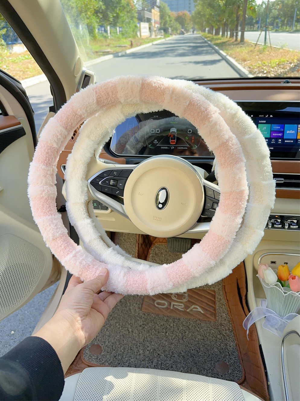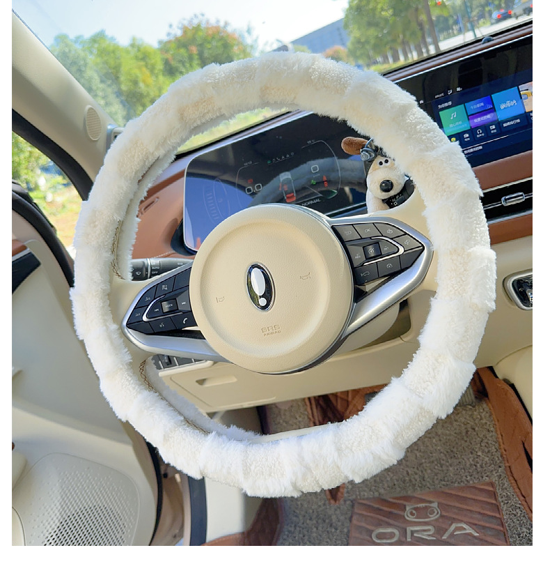 • 흰색 플러시 스티어링 휠 커버