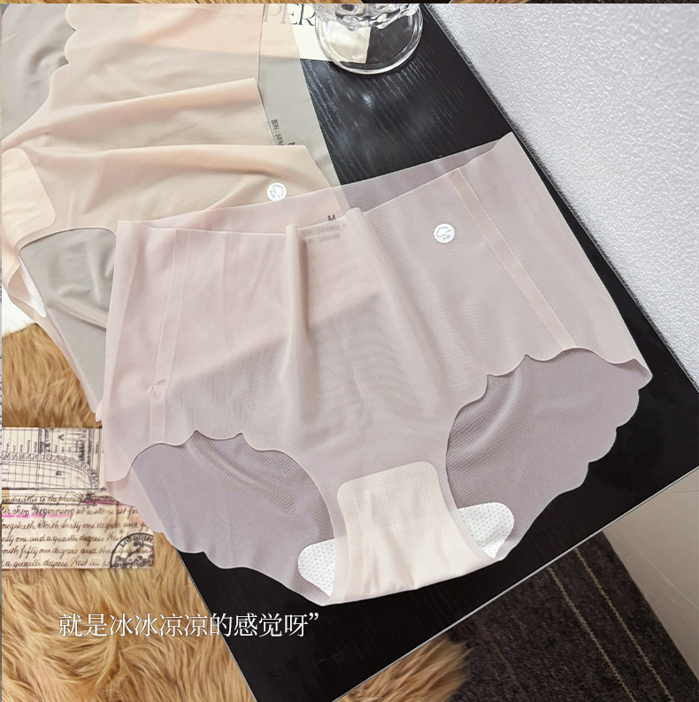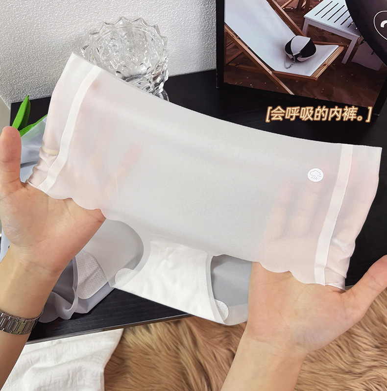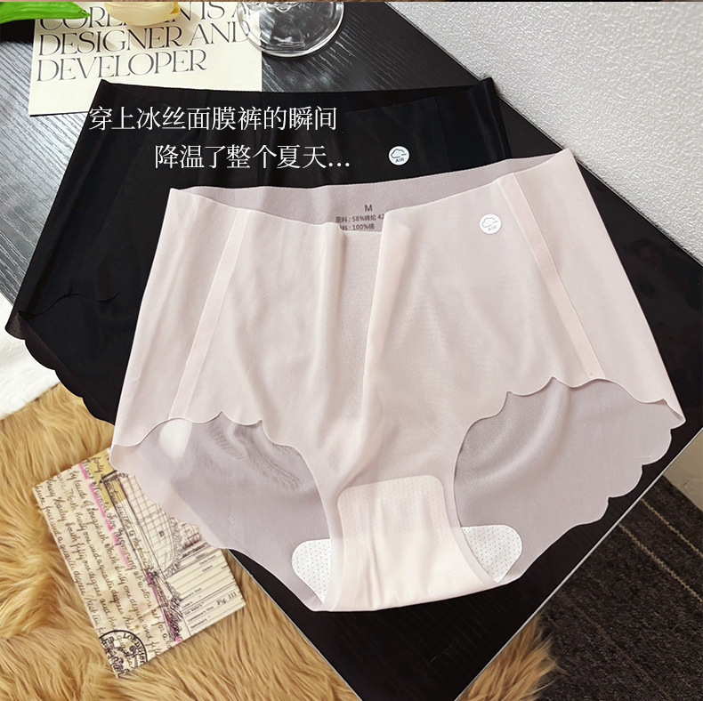 원피스 아이스 실크 마스크 속옷 여성의 중간 허리 초박형 원활한 피부 친화적 인 귀여운 실크 가랑이 소녀 브리프스토어 가기