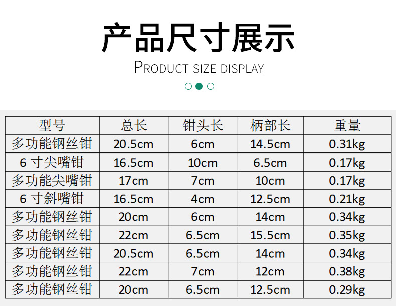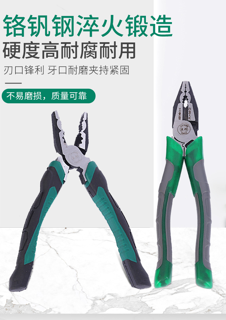 • 크롬 바나듐 강철 8 인치 반 다기능 펜치 (녹색 회색 손잡이)