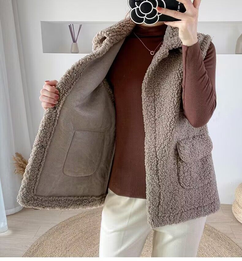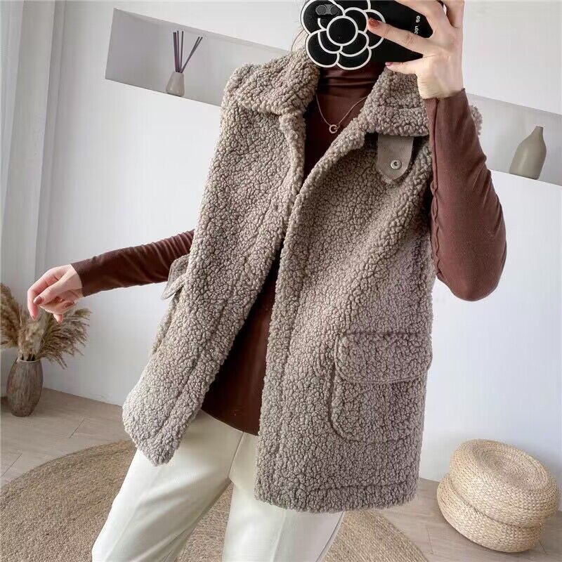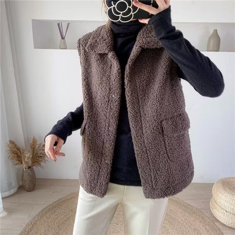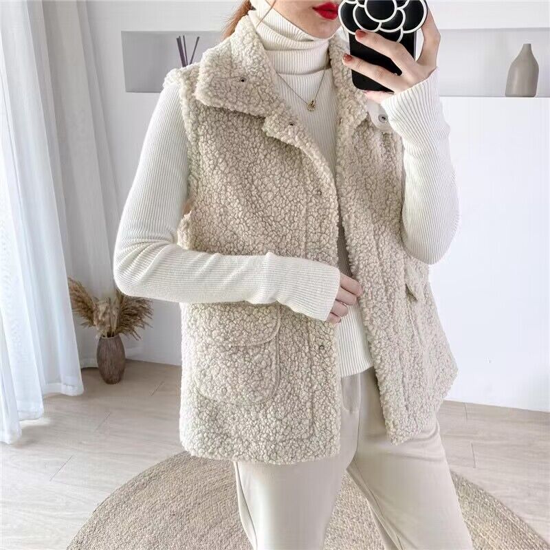 인터넷 인기 브랜드 양털 일체형 여성용 양모 조끼 2025 신상 가을 겨울 조끼 짧은 스타일 다용도 조끼 코트스토어 가기