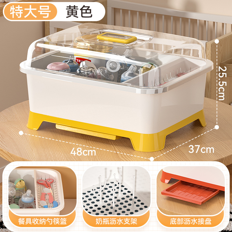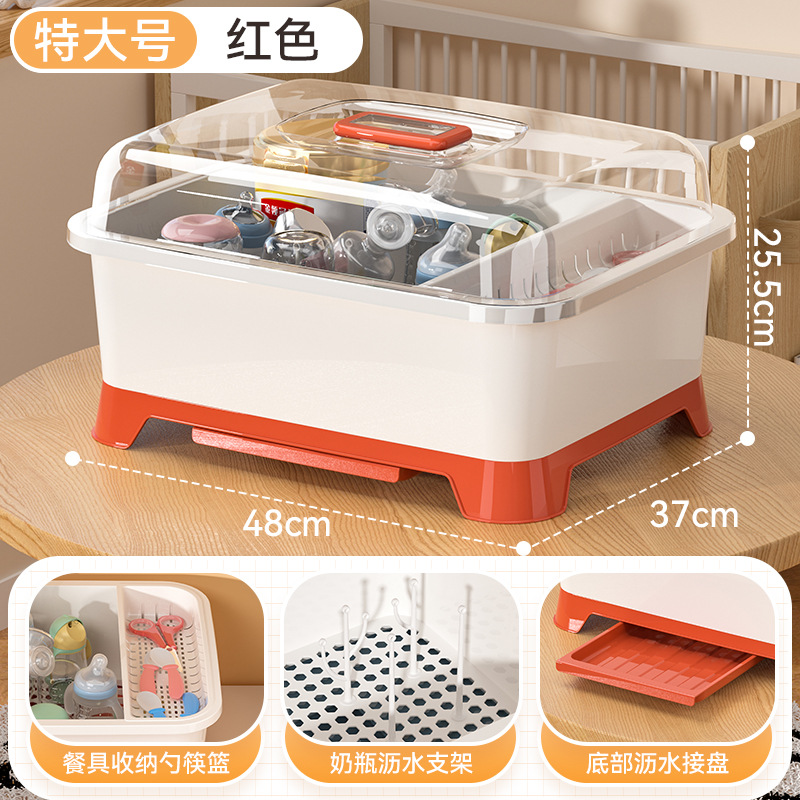 아기 먹이 병 보관 상자 배수 랙 뚜껑 방진 유아식 보충 도구 식기 물 컵 그릇 젓가락 보관 상자