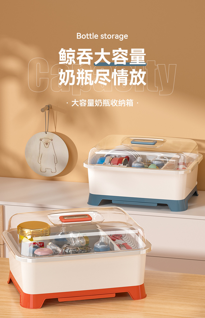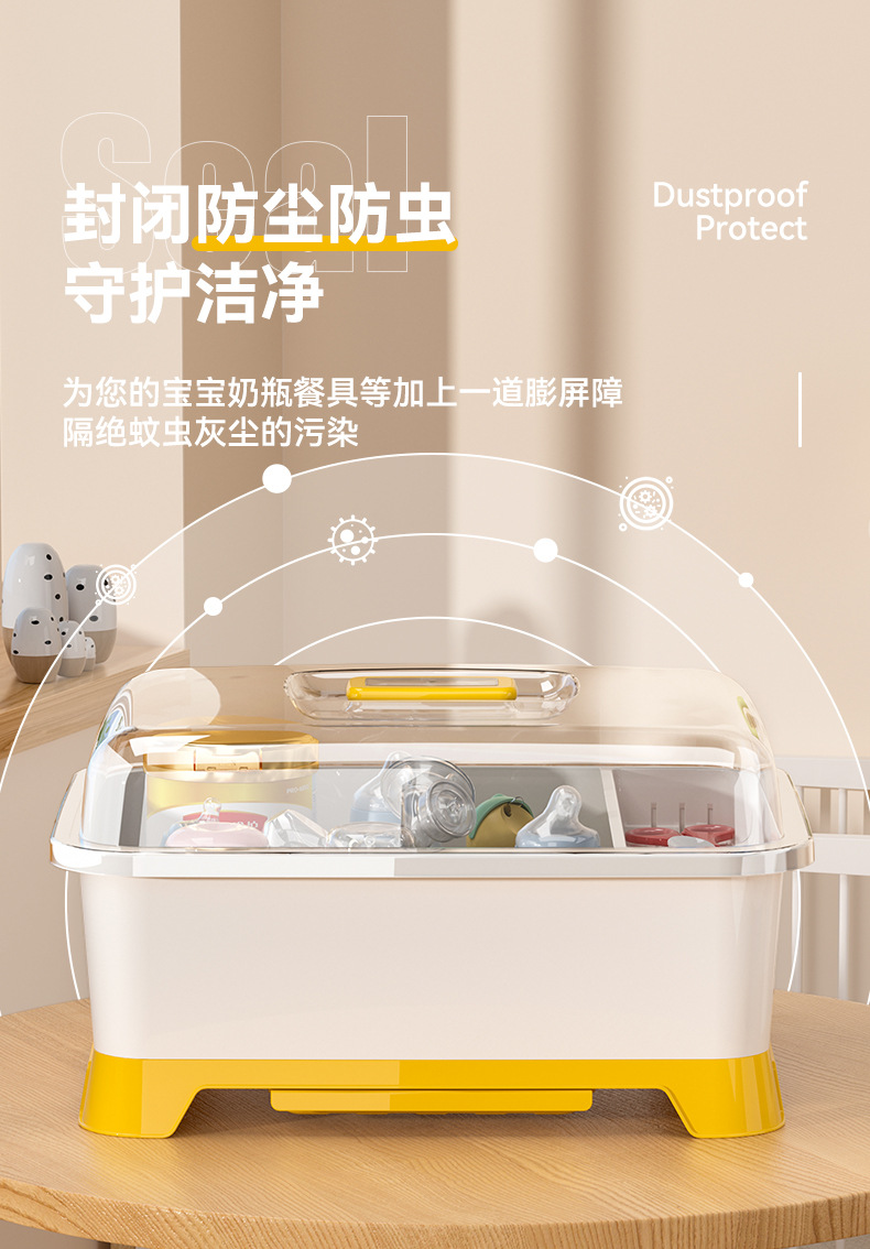 아기 먹이 병 보관 상자 배수 랙 뚜껑 방진 유아식 보충 도구 식기 물 컵 그릇 젓가락 보관 상자스토어 가기