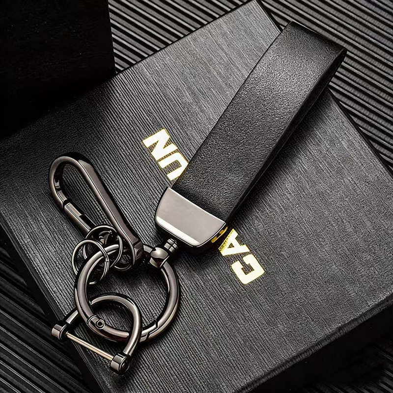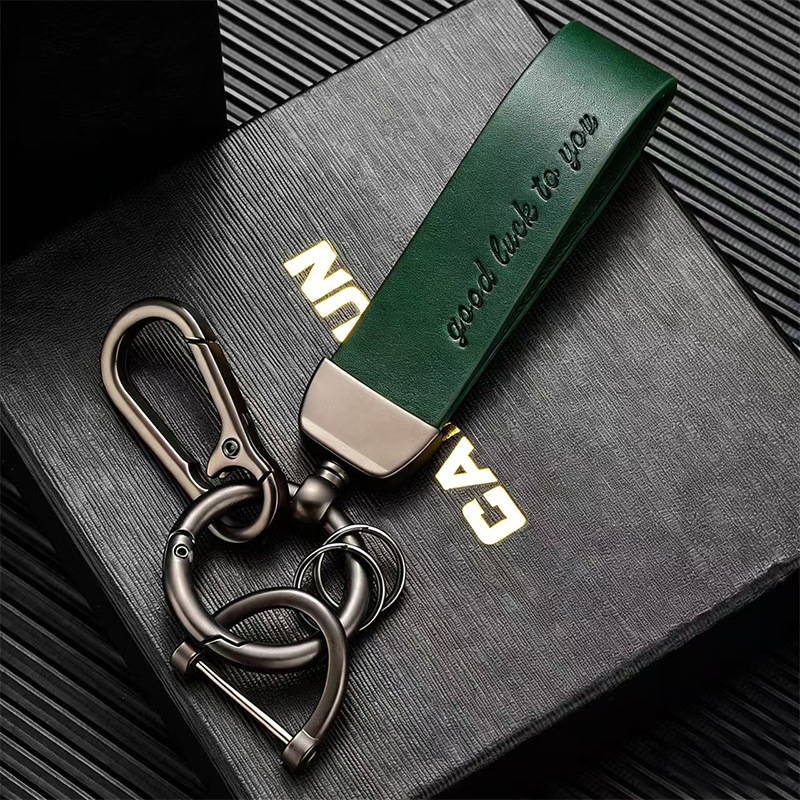 자동차 키 체인 펜던트 미친 말 가죽 키 체인 남성 금속 링 키 링 라이트 럭셔리 작은 선물 키 체인
