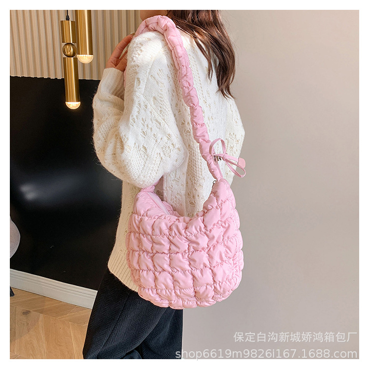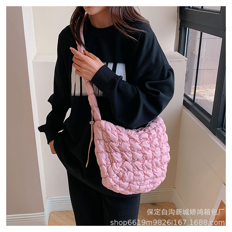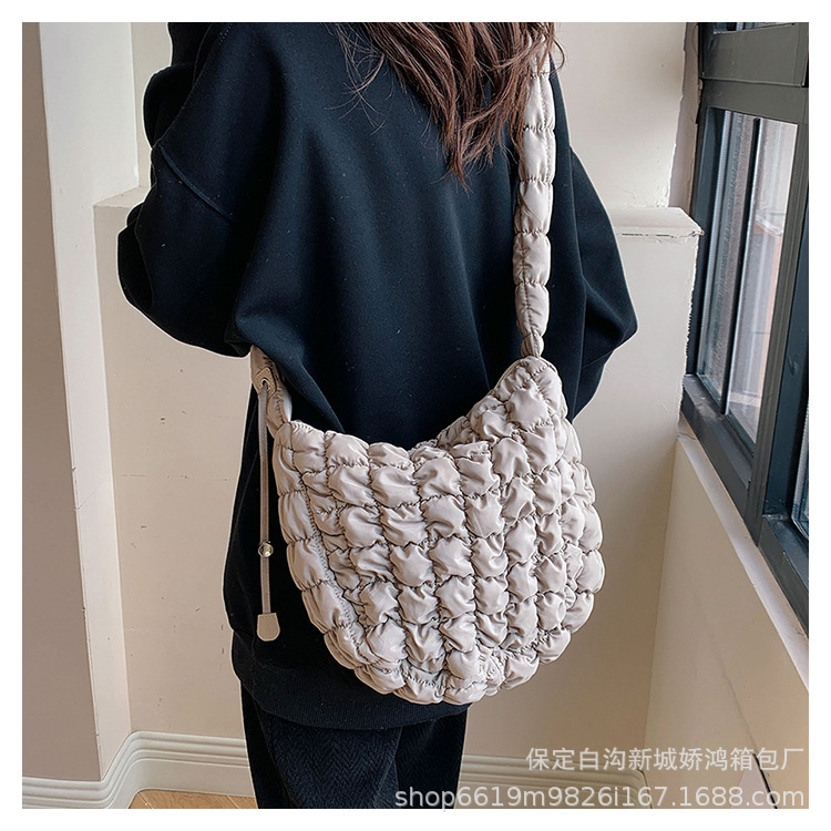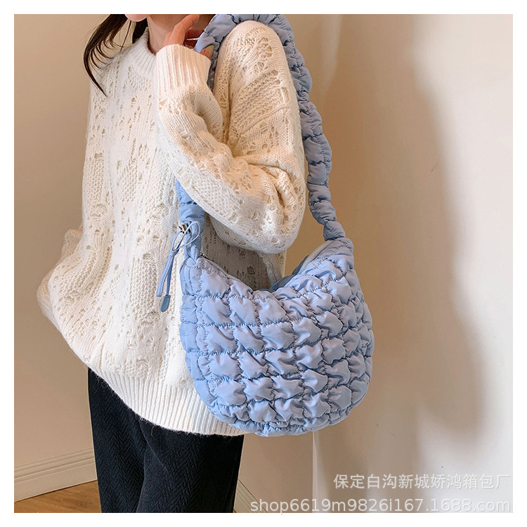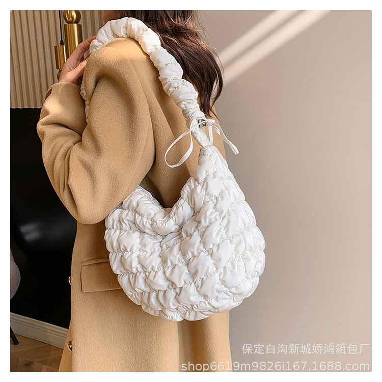 도매 2023 새로운 주름 구름 가방 패션 어깨 손 만두 가방 다운 면봉 재킷 겨드랑이 여성용 가방스토어 가기