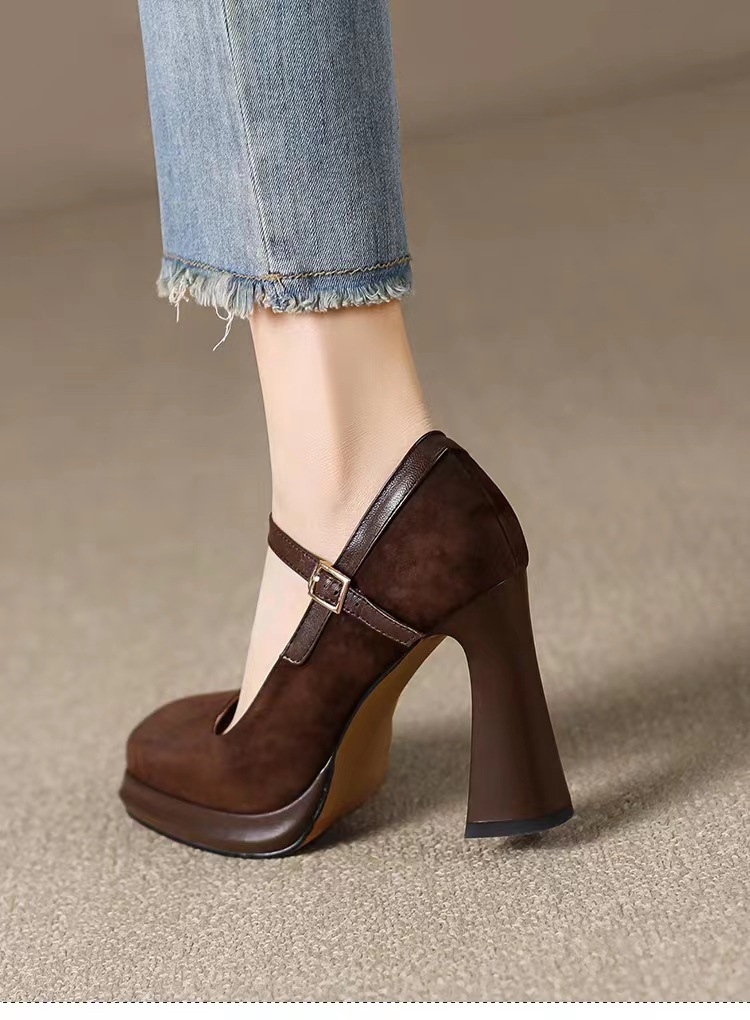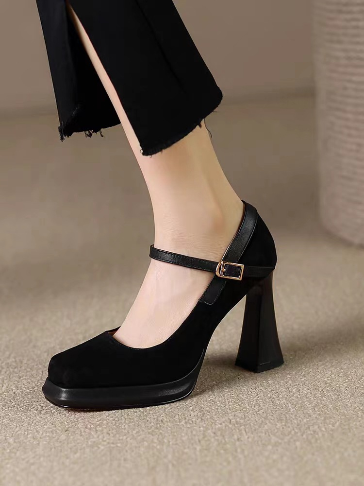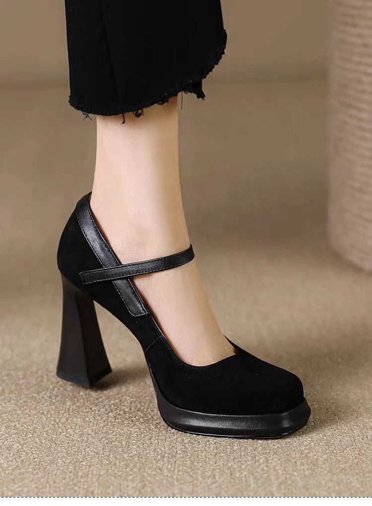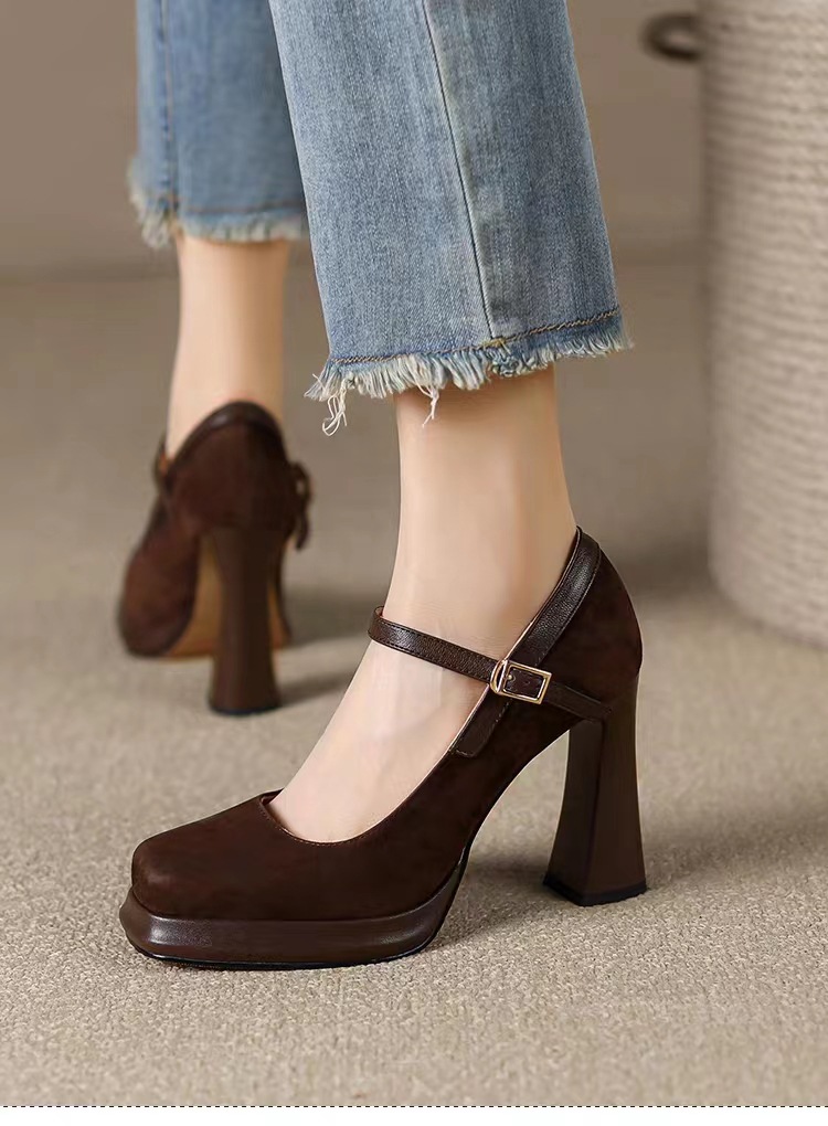 빈티지 두꺼운 바닥 얕은 입 메리 제인 신발 여성의 2024 봄과 가을 새로운 여성 신발 하이힐 두꺼운 힐 라운드 발가락 대학 스타일 싱글 레이어 신발스토어 가기
