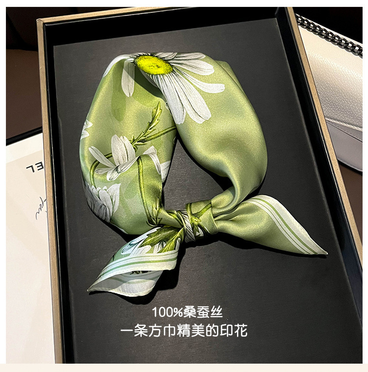 100% 뽕나무 실크 스카프 꽃 무늬 간단한 스카프 실크 꽃 무늬 긴 스카프 올 매치 작은 사각형 스카프 헤어 밴드
