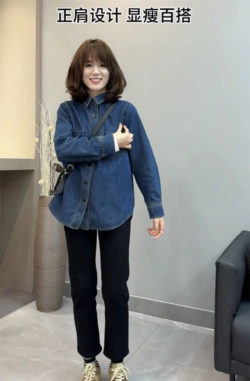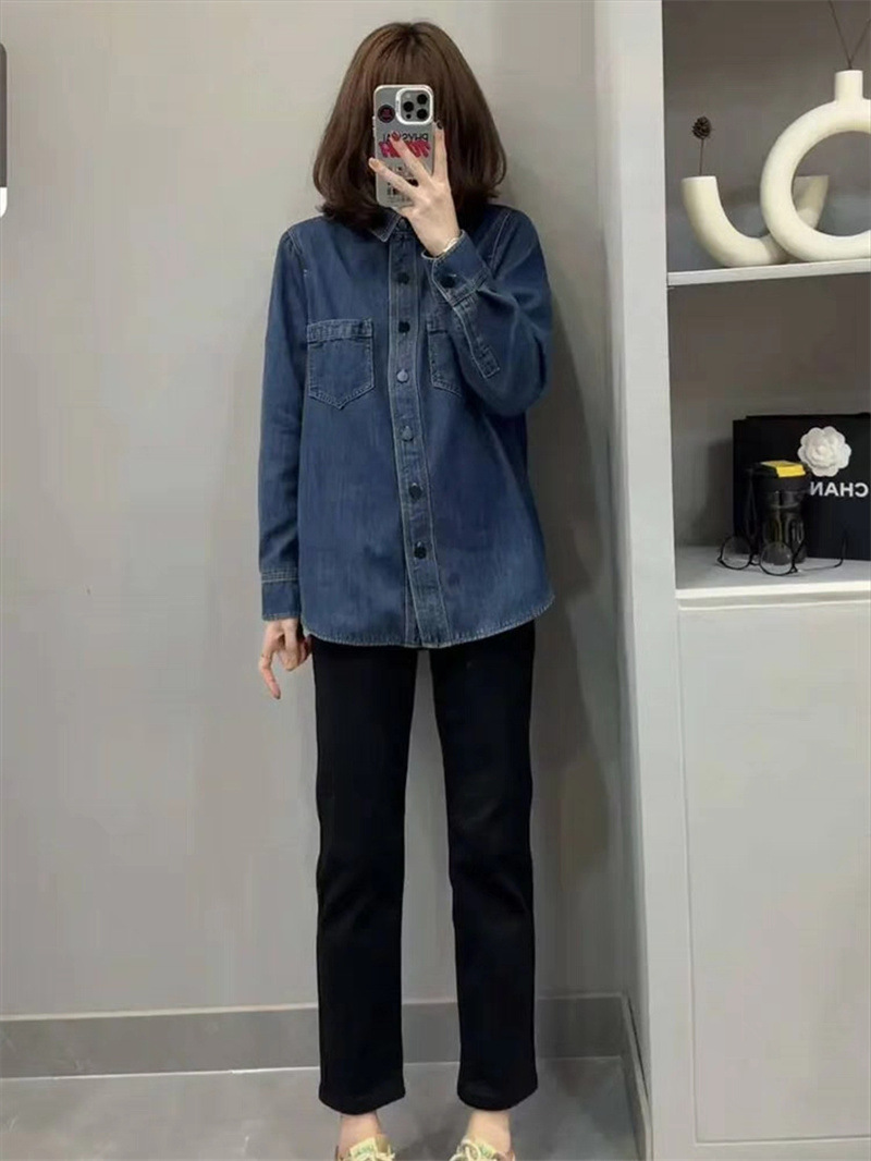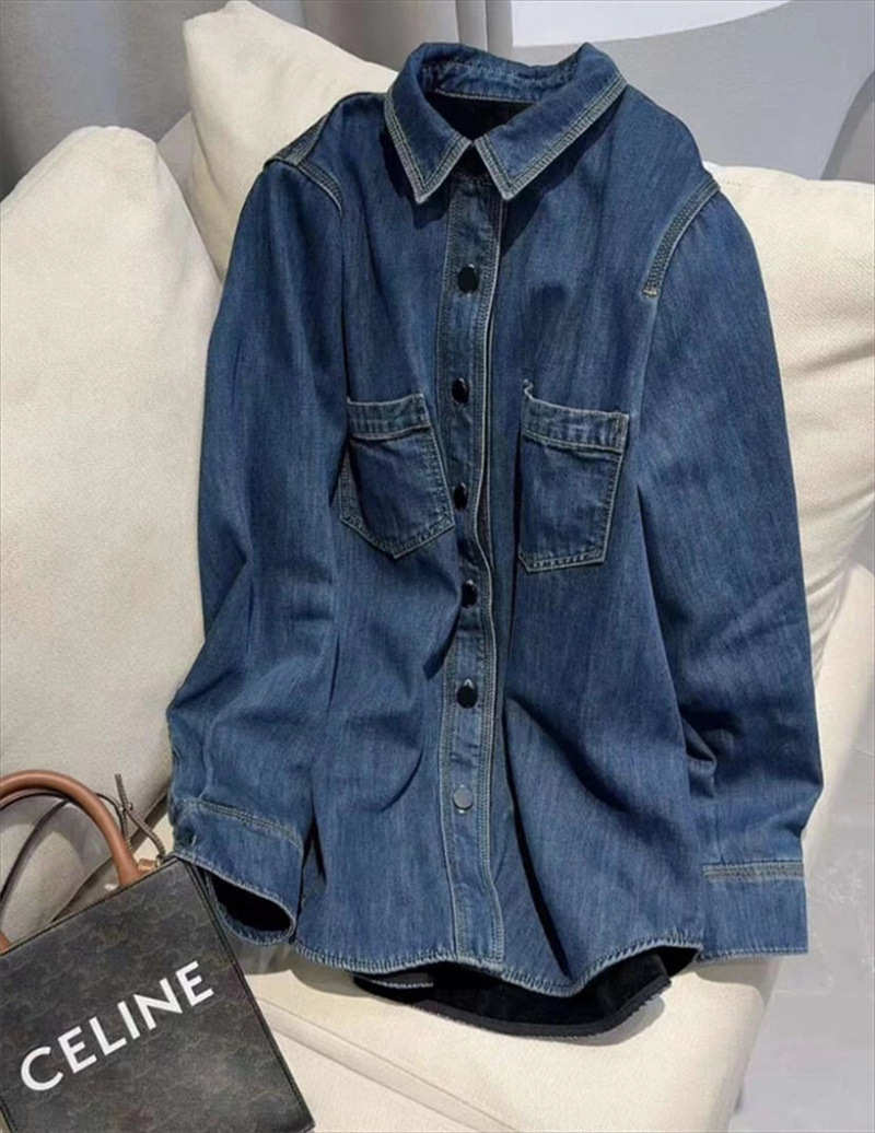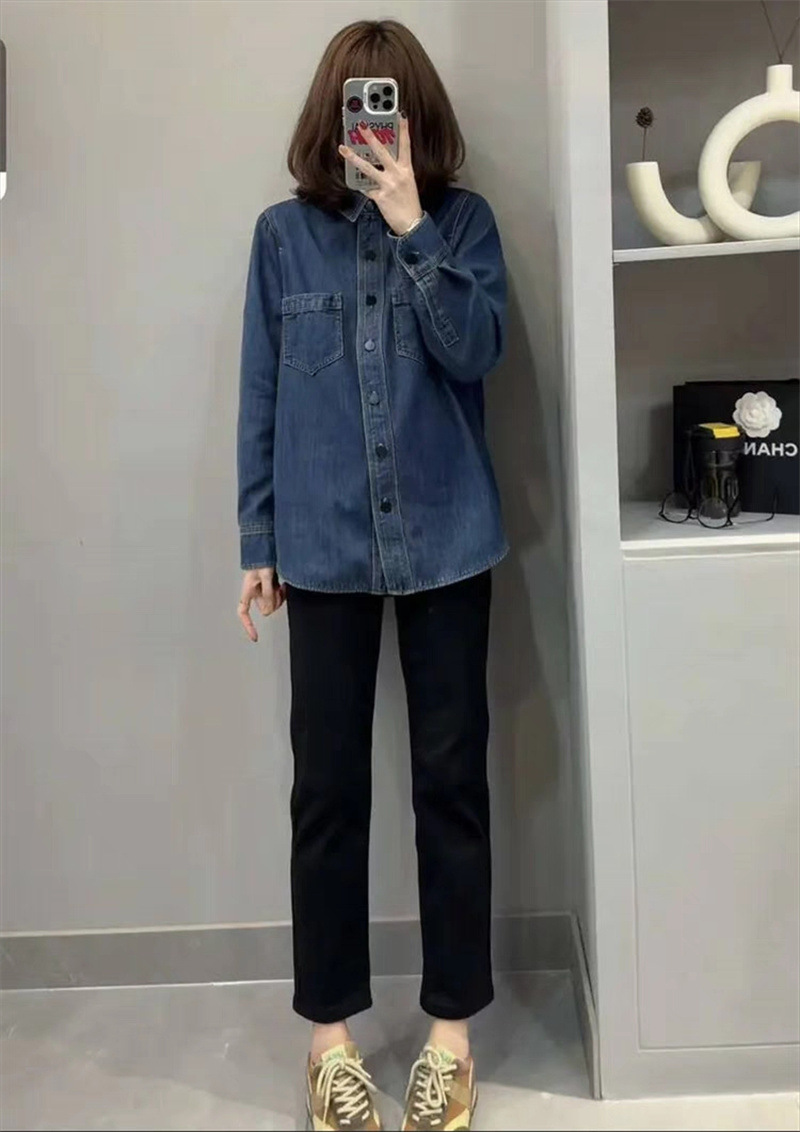 기모 두꺼운 데님 셔츠 코트 여성의 긴 소매 2023 가을과 겨울 새로운 느슨한 캐주얼 셔츠 다목적 슬리밍 탑