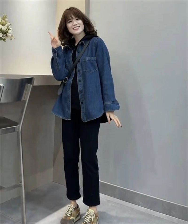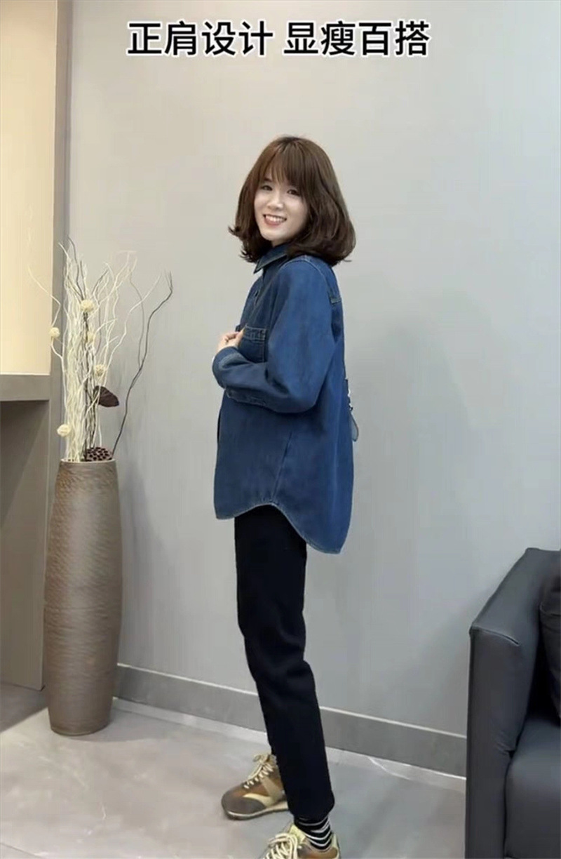 기모 두꺼운 데님 셔츠 코트 여성의 긴 소매 2023 가을과 겨울 새로운 느슨한 캐주얼 셔츠 다목적 슬리밍 탑스토어 가기