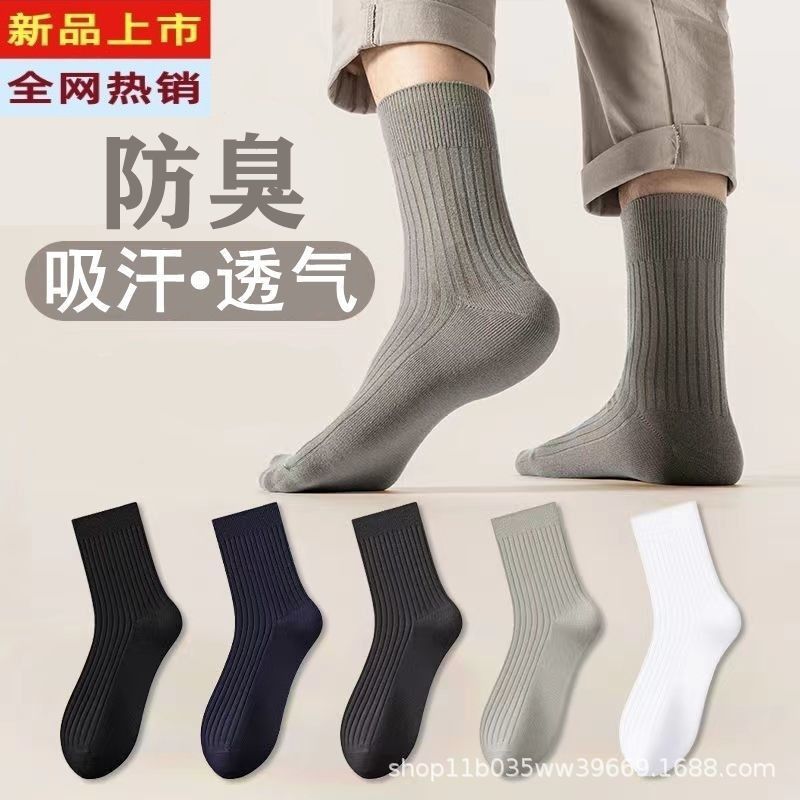 남성용 순면 양말, 냄새 방지, 땀 흡수, 통기성, 중간 길이 스포츠 양말, 봄 여름 비즈니스용, 사계절 다용도 비즈니스 스타일스토어 가기