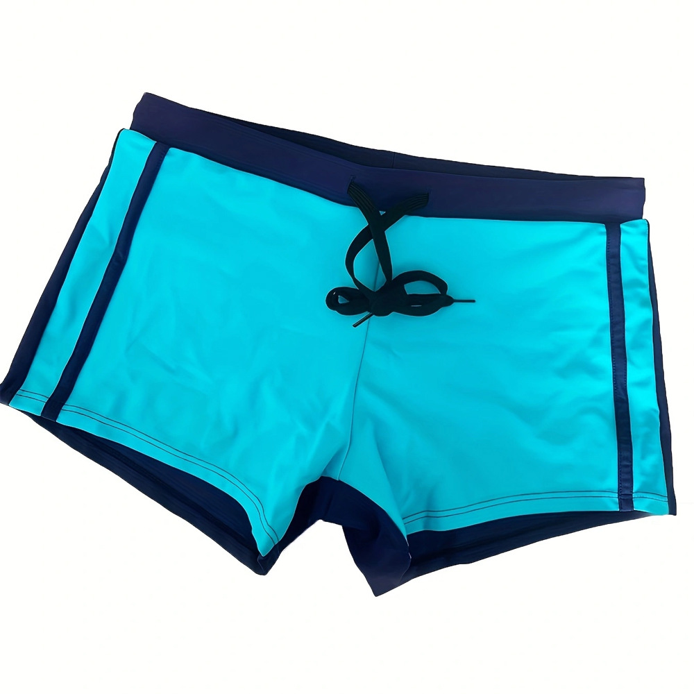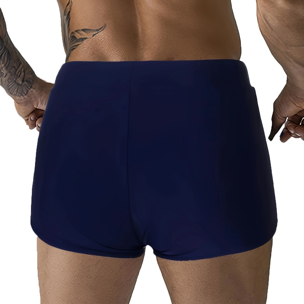 2024 국경 간 대외 무역 새로운 단색 스티칭 낮은 허리 복서 남자의 수영 해변 반바지 재고 도매