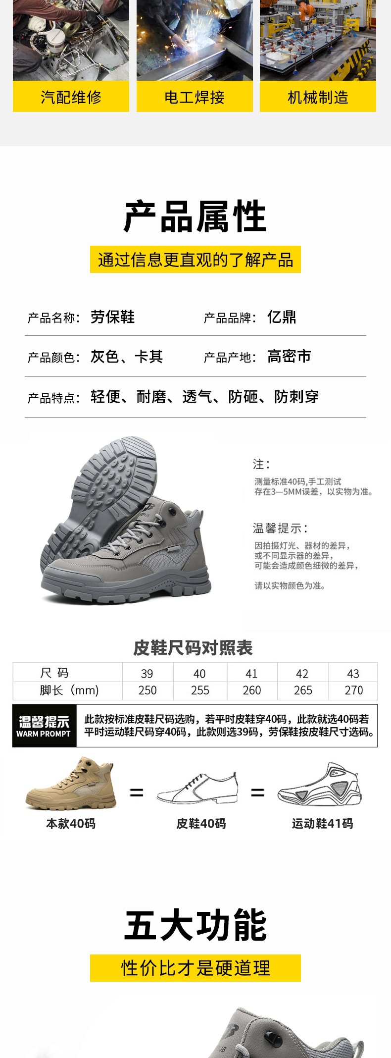 • 116 카키 부드러운 밑창 내마모성 노동 보호 신발; 39