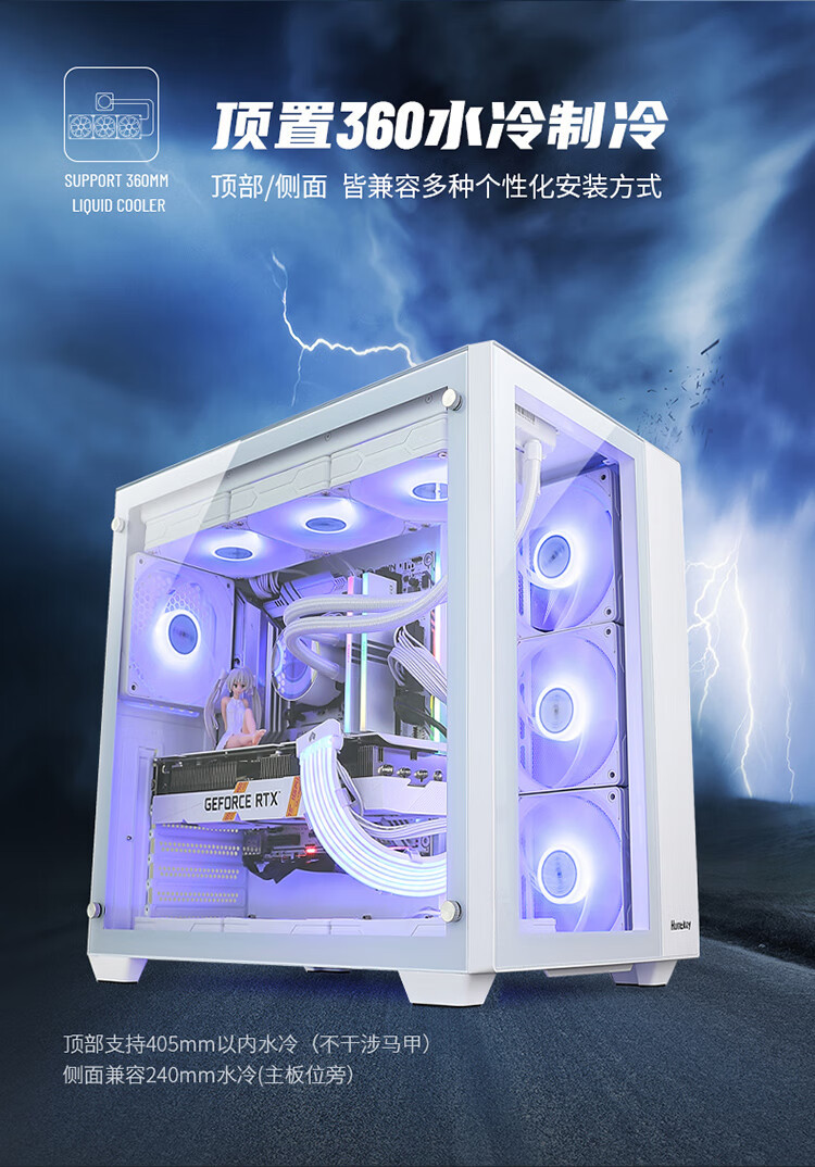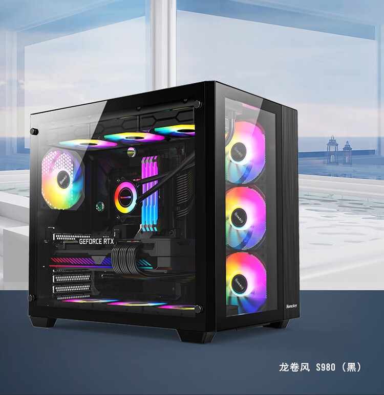 Hangjia S980 토네이도 측면 투명 강화 유리 바다 전망 방 게임 케이스 지원 360 물 냉각 적용