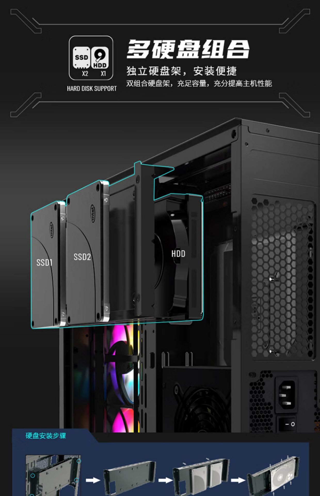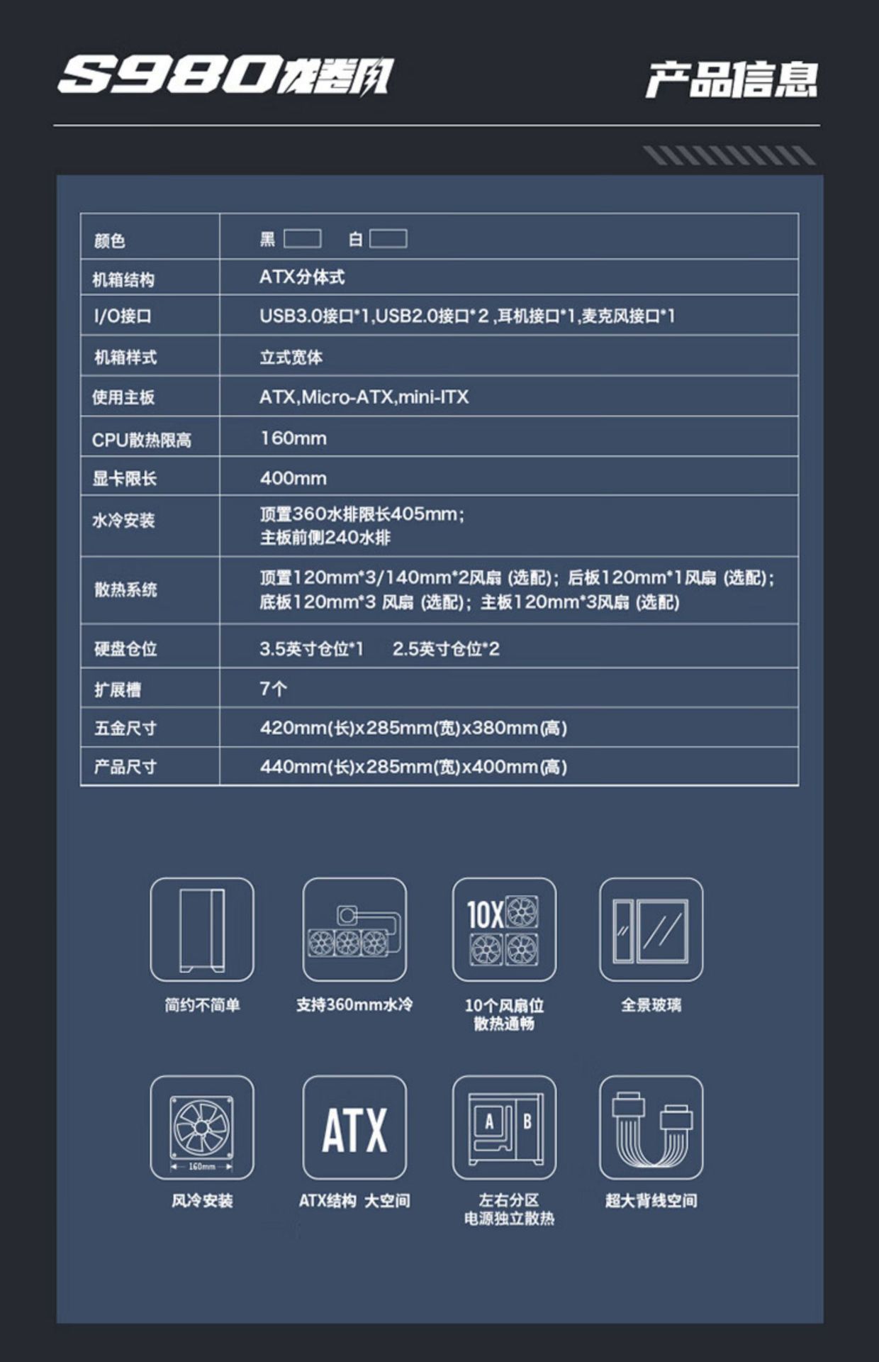 Hangjia S980 토네이도 측면 투명 강화 유리 바다 전망 방 게임 케이스 지원 360 물 냉각 적용스토어 가기