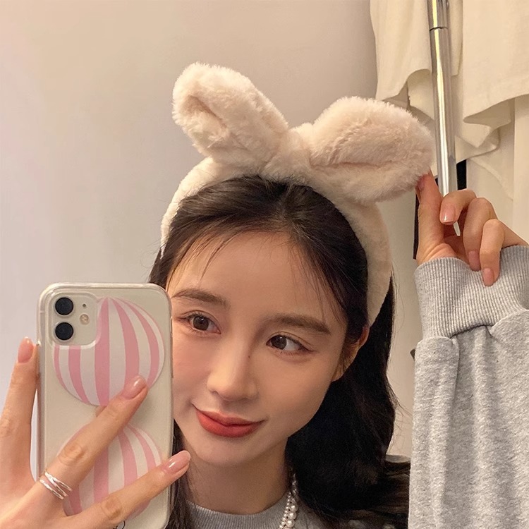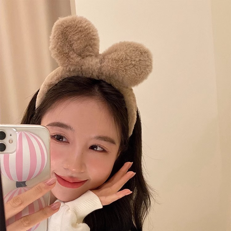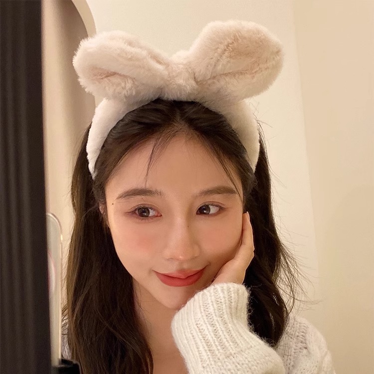 가을과 겨울 새로운 모자 머리띠 귀여운 봉제 토끼 귀 머리띠 인터넷 유명 인사 메이크업 얼굴 씻기 머리 압박 머리핀 여성 헤어 액세서리