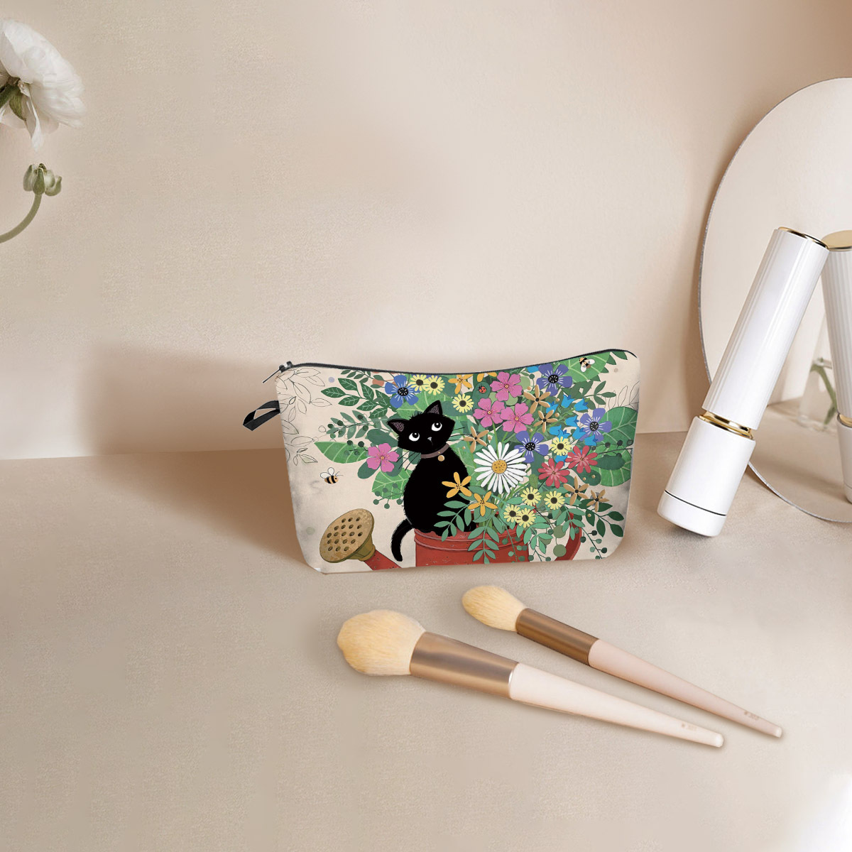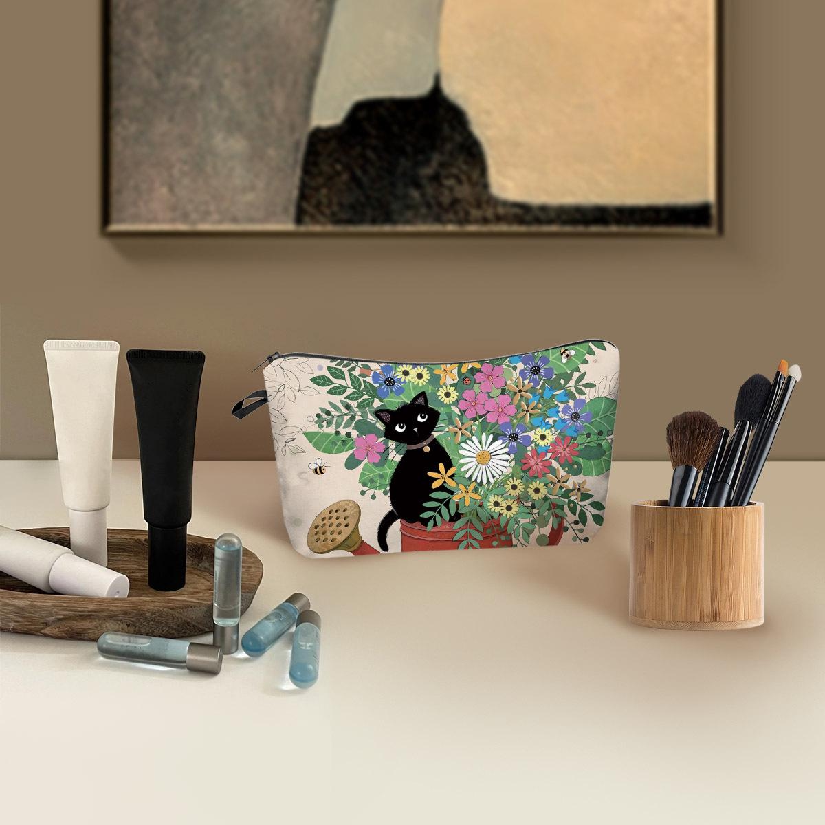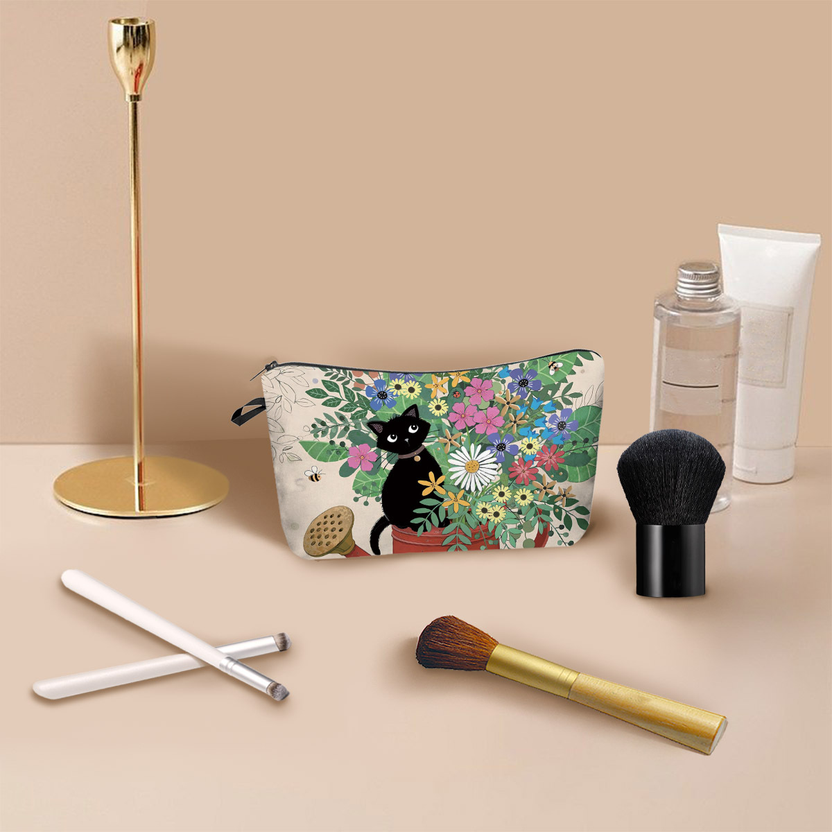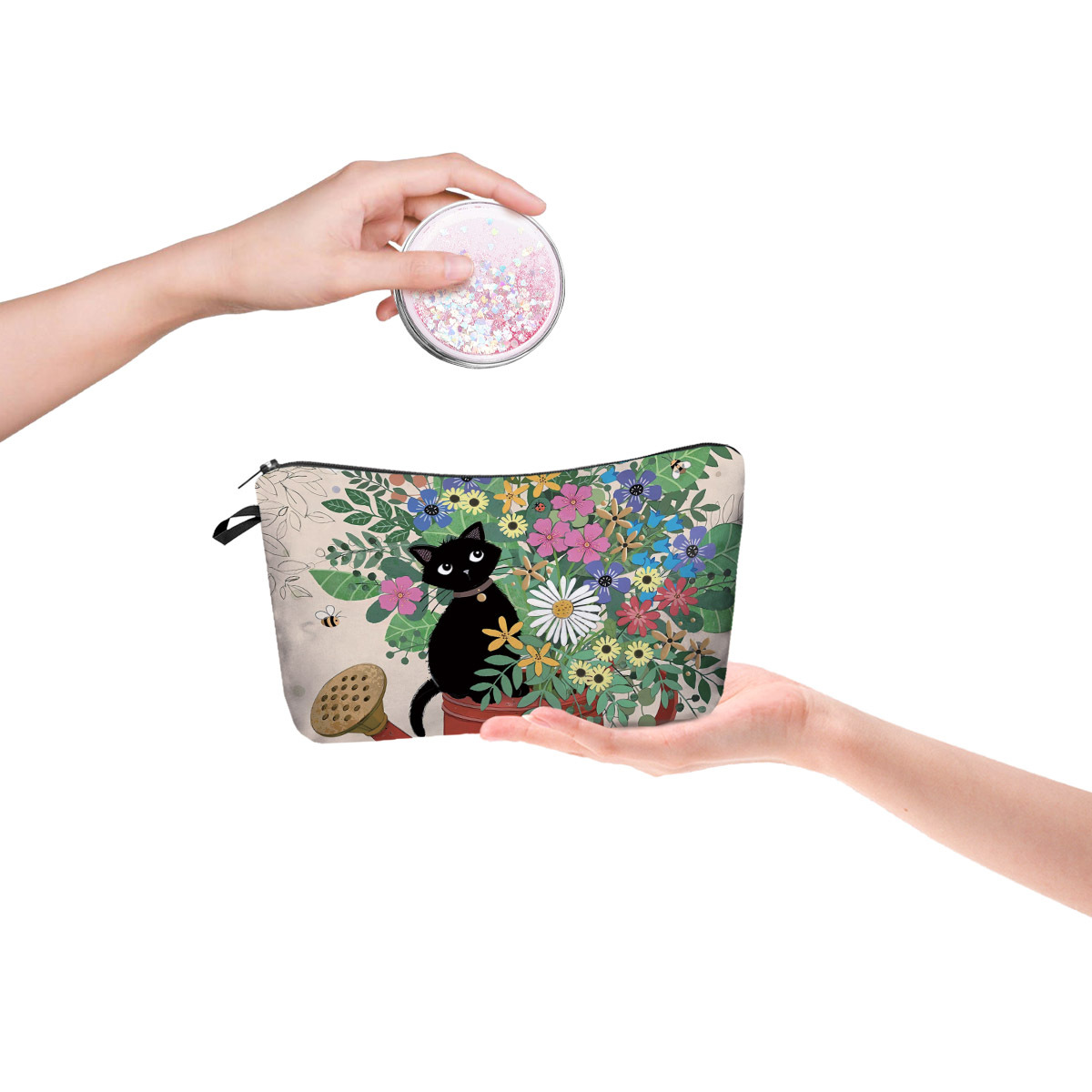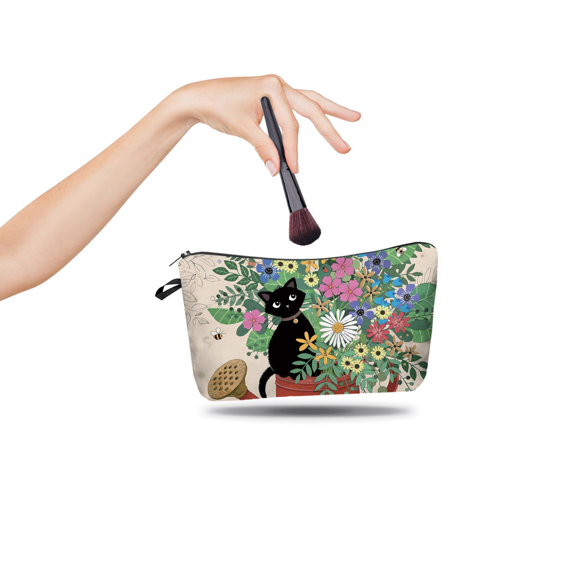 국경 새로운 만화 작은 검은 고양이 인쇄 화장품 가방 손 저장 게으른 휴대용 여행 가방 세탁 가방
