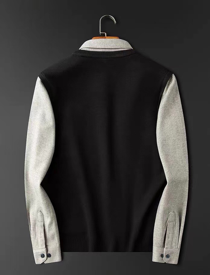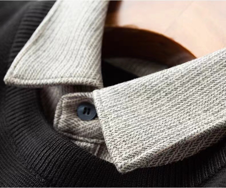 겨울 두꺼운 따뜻한 모직 벨벳 스티칭 가짜 투피스 셔츠 칼라 스웨터 남성용 긴팔 캐주얼 스웨터 남성스토어 가기