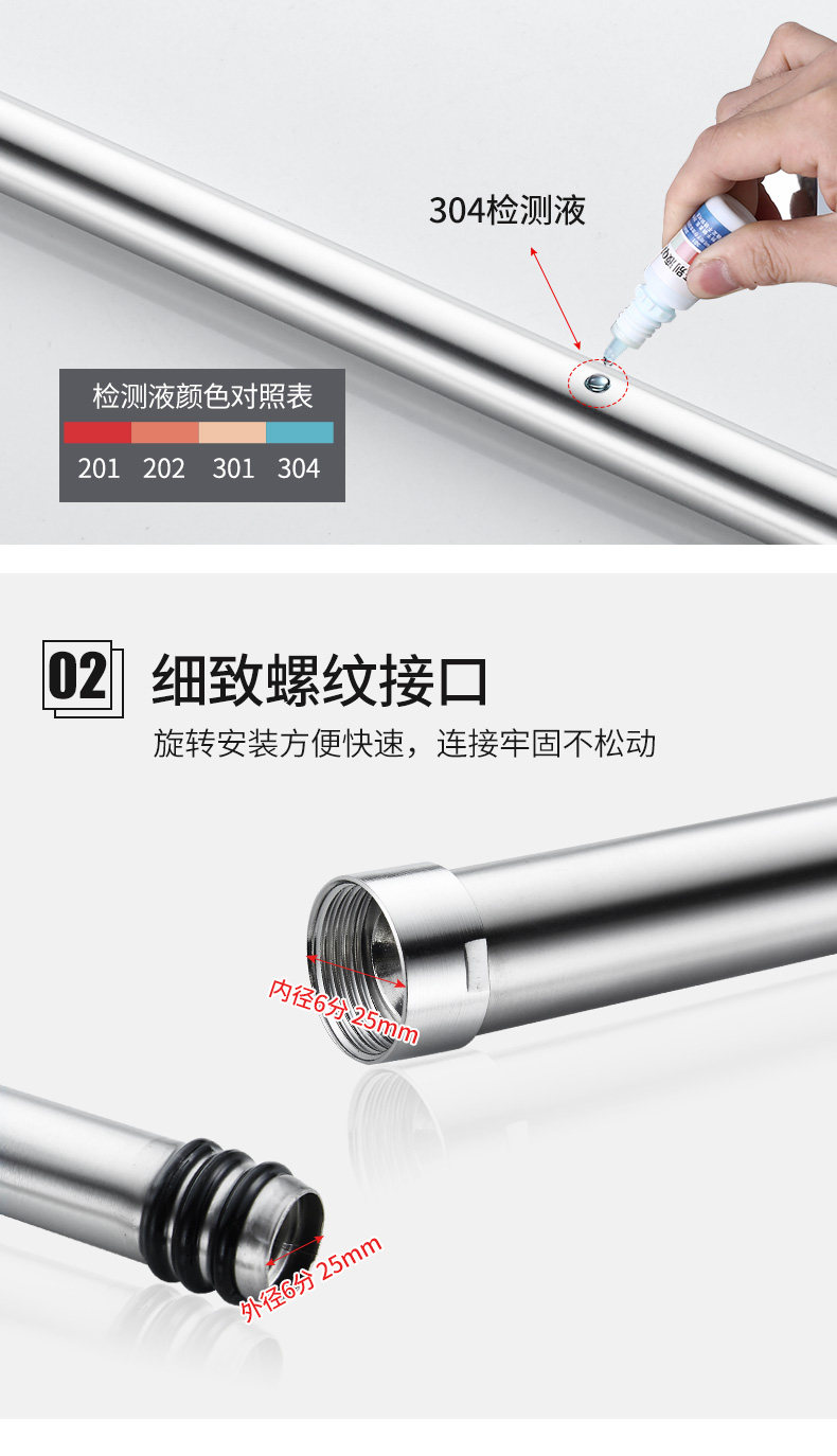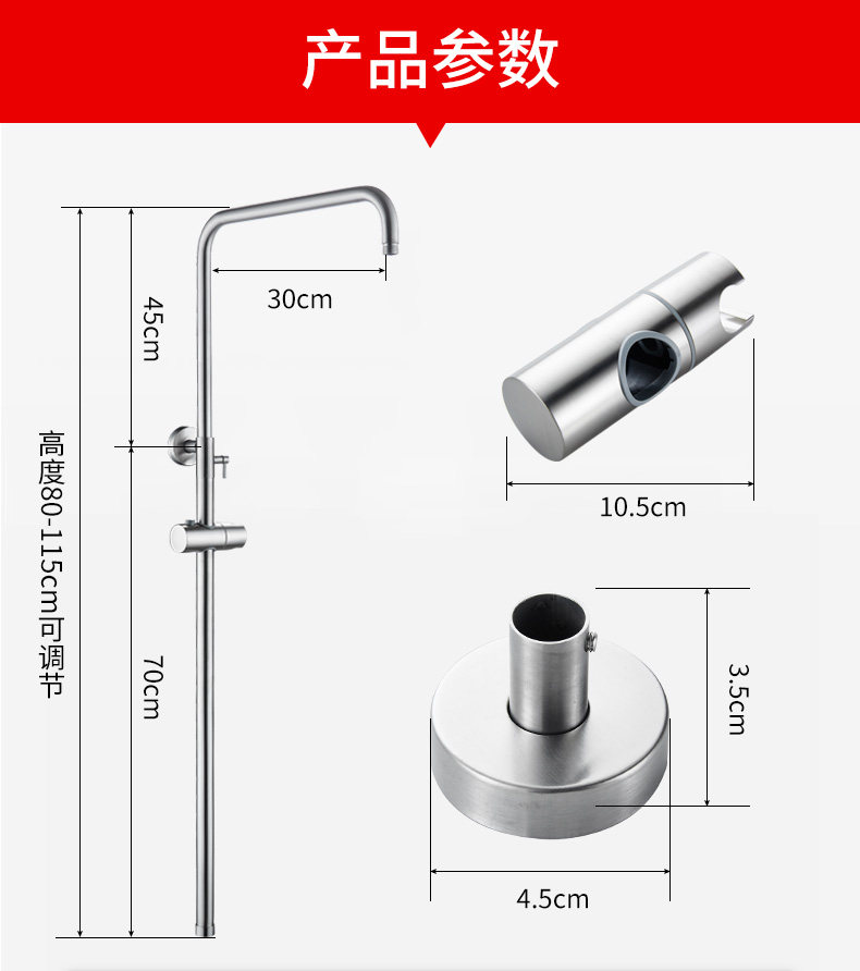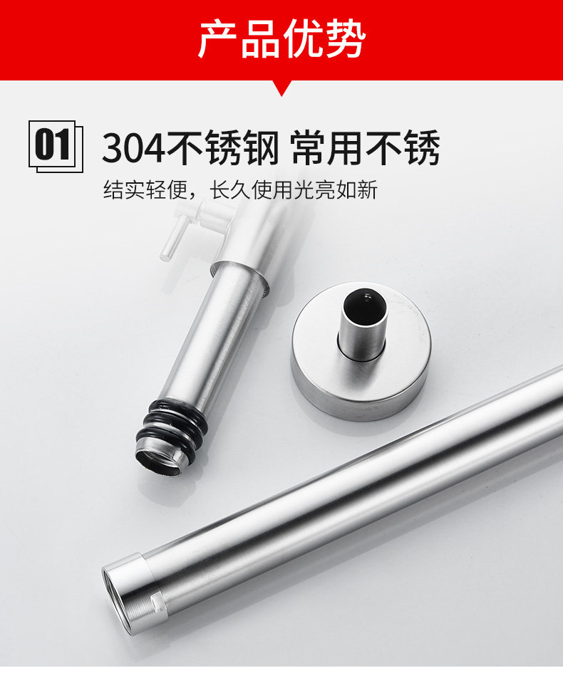 • 304 샤워 헤드 리프팅 로드 + 라운드 노즐 3 피스 세트