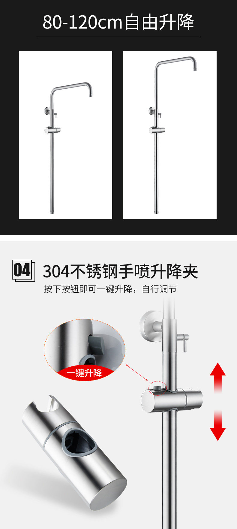 • 304 샤워 헤드 리프팅 로드 + 조정 가능한 노즐 4 피스 세트