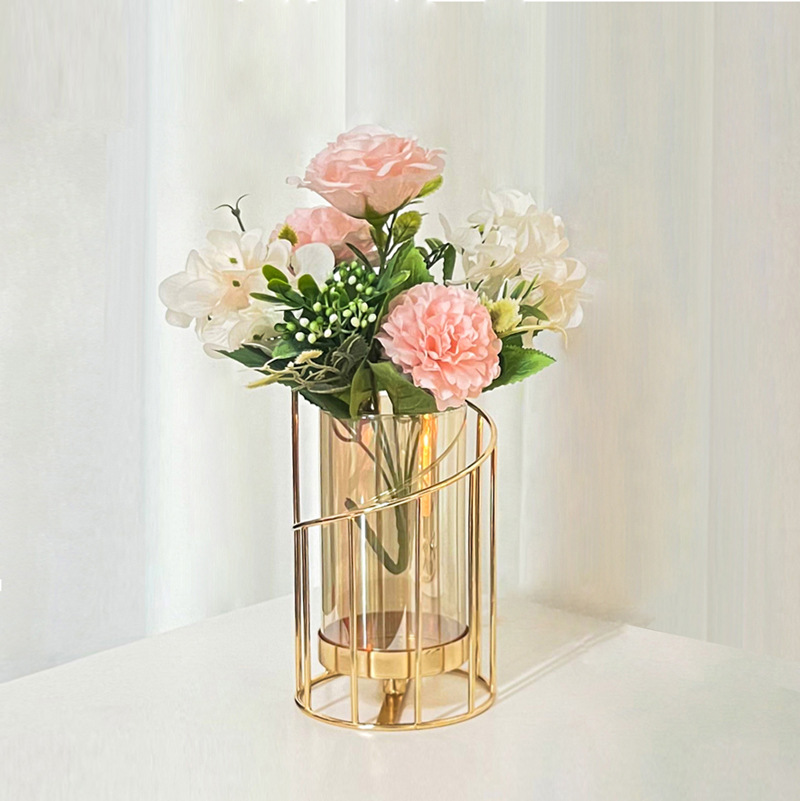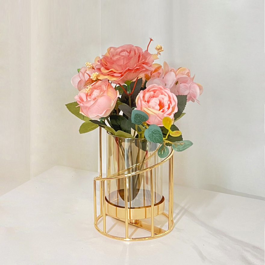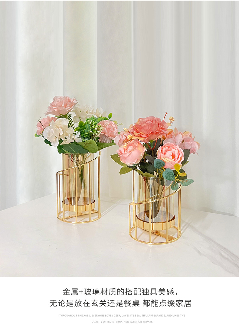 북유럽 창조적 인 빛 고급 금속 꽃병 식사 테이블 철 꽃병 장식 홈 거실 말린 꽃 장식품